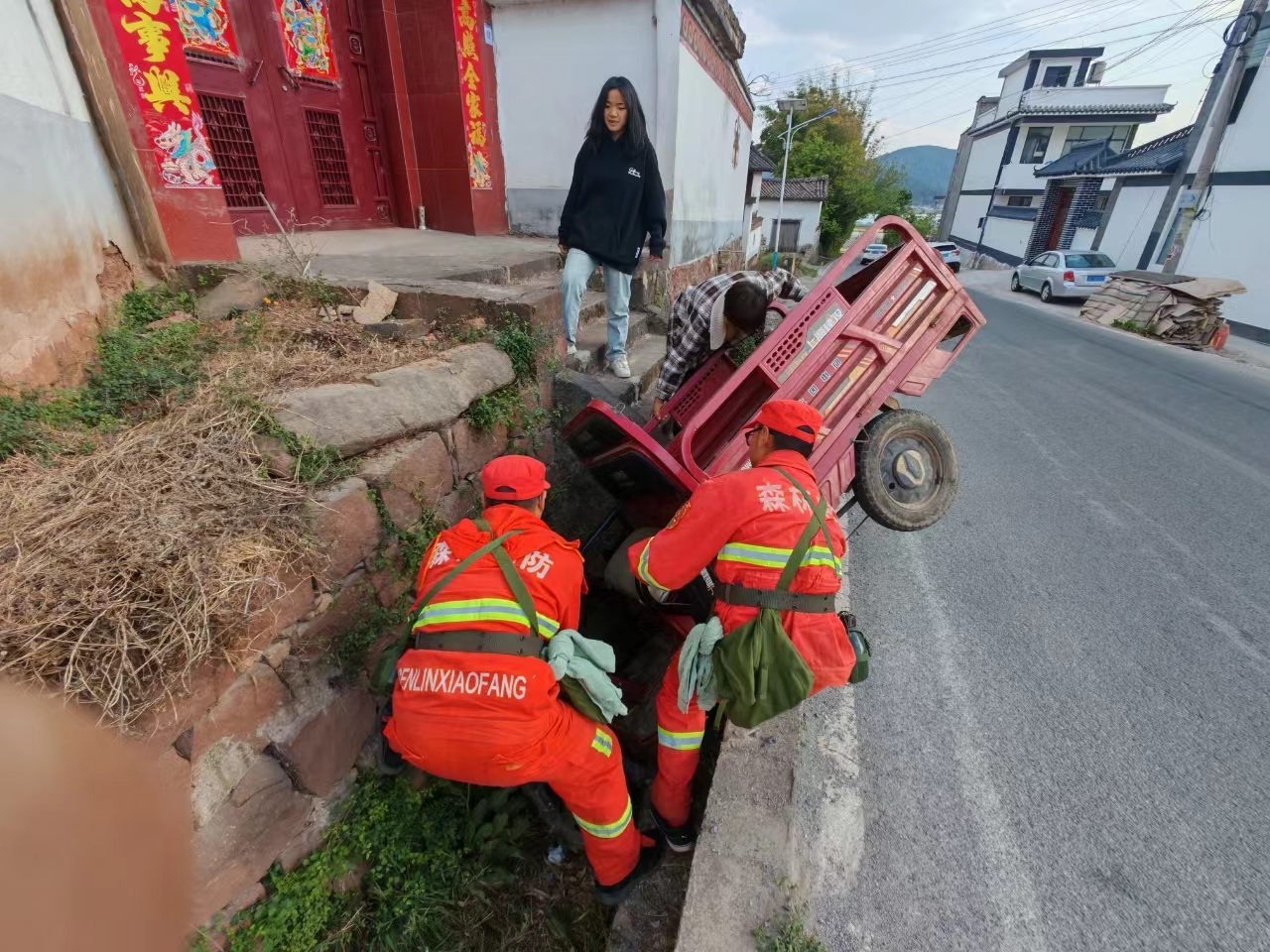 11时0分和17时10分许,插甸综合应急救援队在开展巡山防火途中,经过插甸镇长已线团结坝路段和下谷都艾村路段时,发现一辆轿车和一辆三轮电瓶车侧翻在路边沟中无法动荡,驾驶员正在现场心急如焚。见此情形,插甸镇综合应急救援队主动作为,立即下车询问驾驶员是否受伤,在得知驾驶员无大碍后,全体救援队员立即分成两组开展救援,一组指挥现场交通,避免发生二次事故;一组实施抬车拖车救援,经过大家的几翻努力,终于成功把侧翻的轿车和三轮电瓶车拖到路上,及时为群众排除困难。看到自己的车被成功拖到路上,驾驶员悬着的心也放下了,脸上随即露出了笑容。两起救援得到了辖区群众和驾驶员的赞誉。