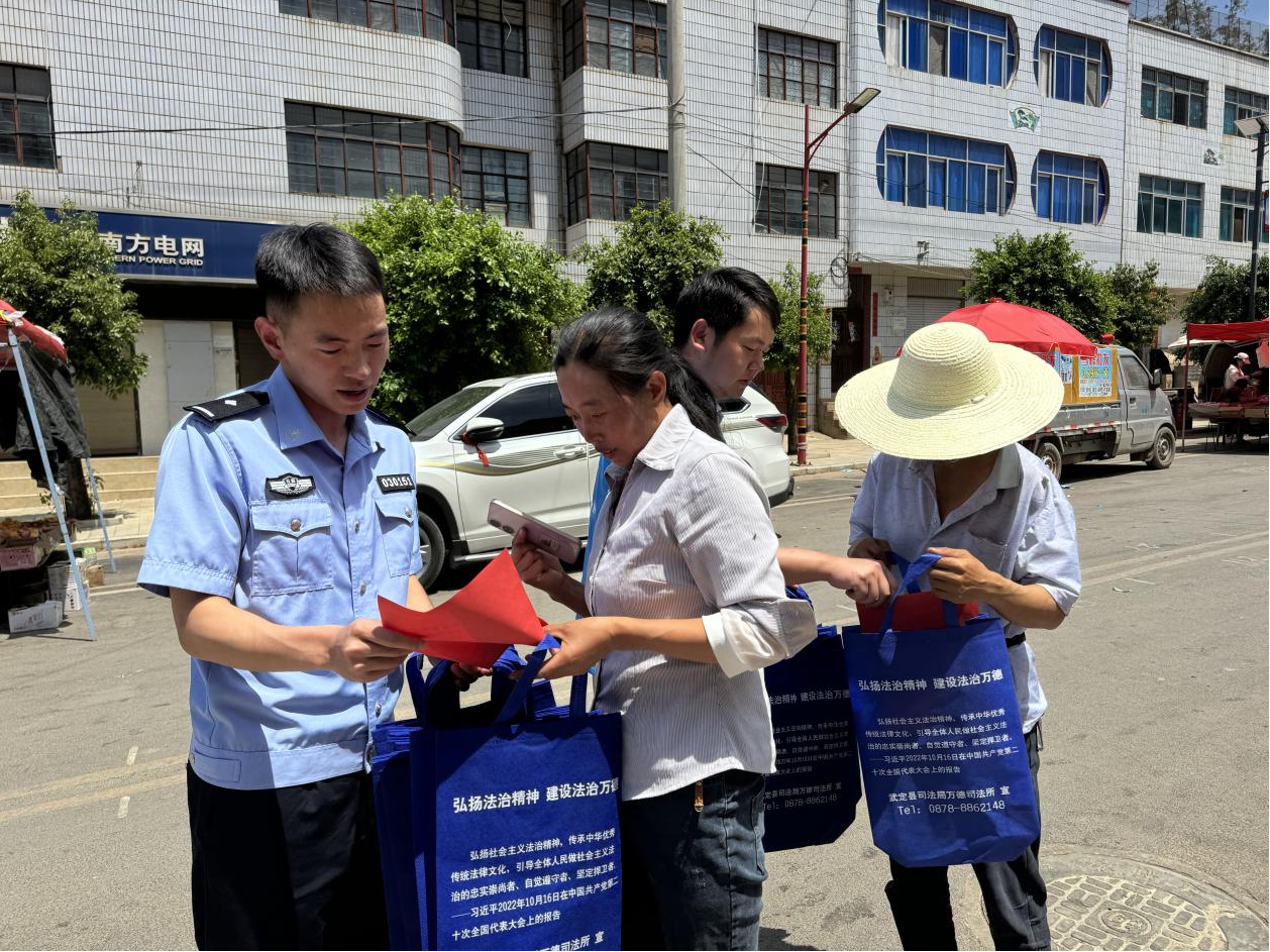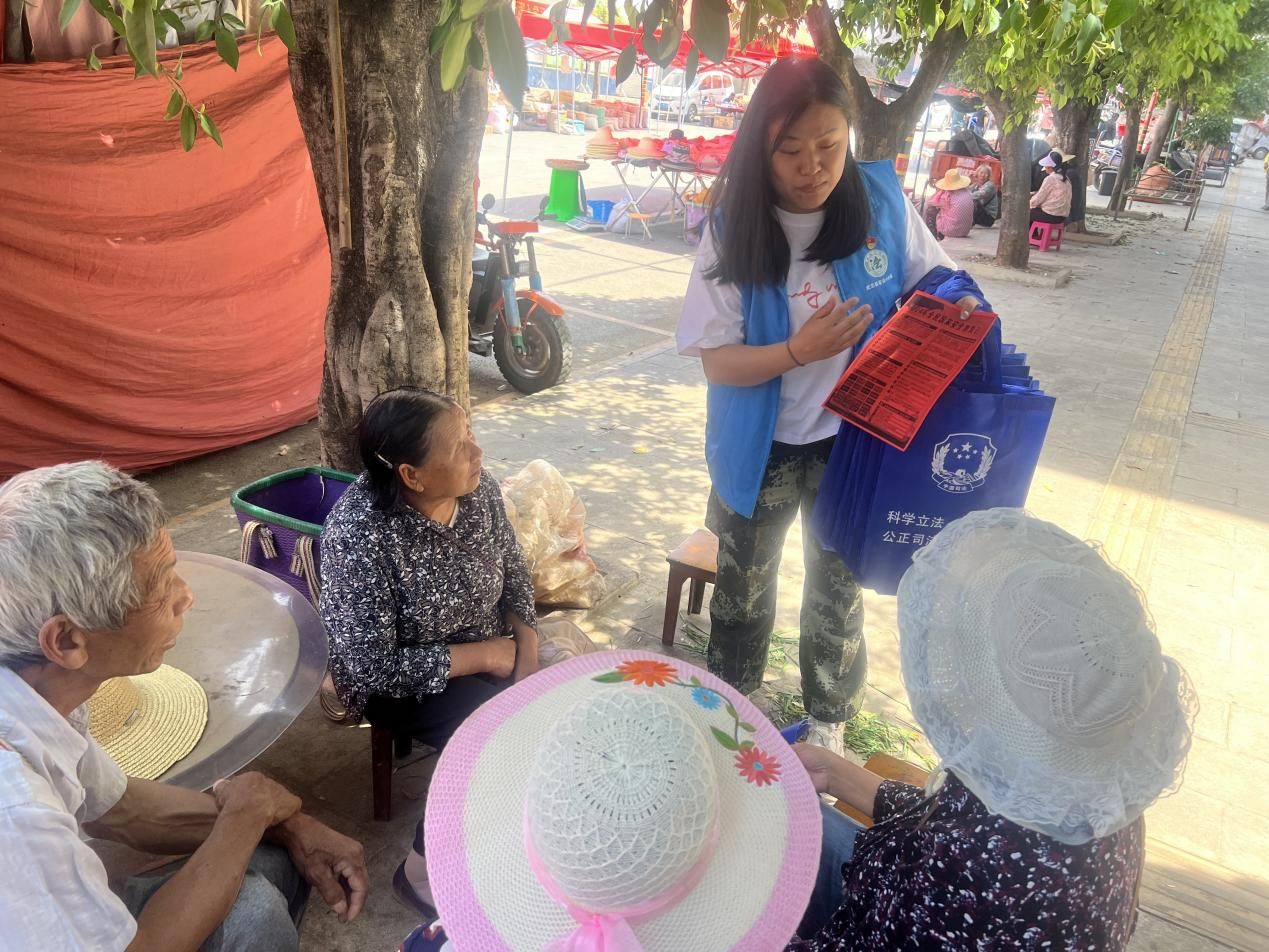 活动现场,工作人员主动出击,沿街流动宣传,向来往群众派发宣传资料,“面对面”宣传普及国家安全相关知识,同时宣传防范电信网络诈骗、交通安全知识,告知群众遇事用法、找法途径。本次宣传活动共计发放宣传资料300份,向群众普及《中华人民共和国国家安全法》《中华人民共和国反间谍法》《中华人民共和国保守国家秘密法》等法律法规,向100余人详细讲解了国家安全相关知识。