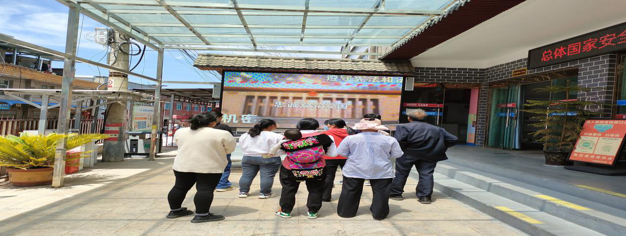 活动中,卫生院提前做好了宣传准备工作,及时编印国家安全教育相关知识的宣传材料、宣传单,在卫生院中彝医馆旁墙壁的LED 电子屏打出了国家安全教育宣传主题为“总体国家安全观,创新引领十周年”的滚动字幕进行宣传,并在LED大屏播放相关宣传及科普视频,确保凡是来卫生院就诊的患者都能看到,让大家充分了解国家安全教育知识,提高全民国家安全意识。