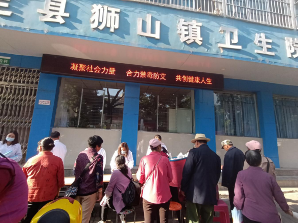 为了加大禁毒防艾宣传教育力度,减少毒品和艾滋病的社会危害,提高广大居民拒绝毒品、预防艾滋病的紧迫感和责任感。近日,狮山镇卫生院以楚雄州第35个禁毒和防治艾滋病宣传周为契机,开展了以“凝聚社会力量,合力禁毒防艾,共创健康人生”为主题的宣传活动。