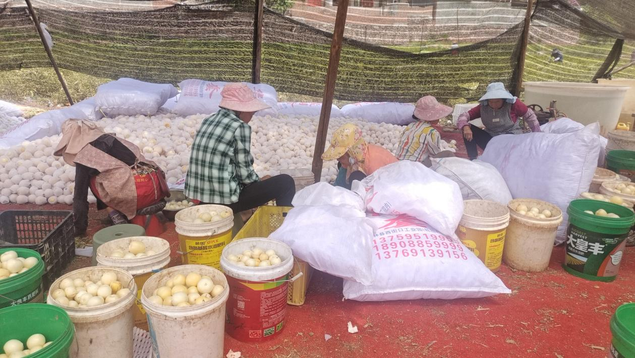 随着丰收季的到来,基地也迎来了用工高峰。每天,有近60名村民忙碌地穿梭在基地里,他们熟练地采摘、分拣、套袋、装筐、装车运输,呈现出一派繁忙的景象。