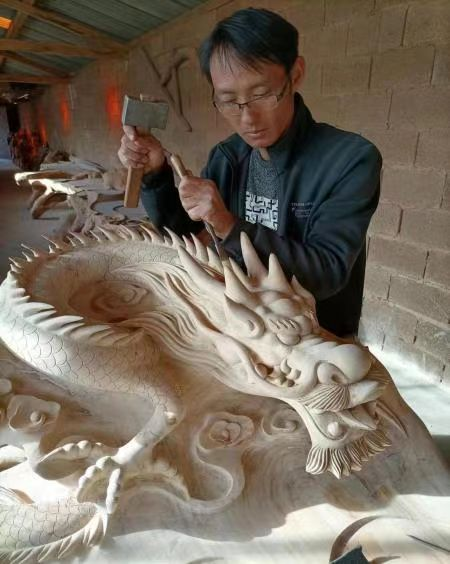 初心不改,笃志前行。罗晓华的爷爷、外公在上世纪六七十年代是当地有名的木匠,父亲也以做木工为生,锯子、推刨、刻刀、墨斗成为了他幼年时的玩具。初中毕业后,因身体残疾、家庭贫困没能继续上学,为学到一门适合自己、养活自己的技术,减轻家中经济负担,罗晓华选择外出务工,期间接触到了木雕。中国深厚的木雕文化和精美的木雕工艺品及精湛的雕刻技艺深深的吸引了他,他也跟着学做榫卯、立木架、雕柱头、刻窗花。罗晓华为了能将手艺传承并发扬光大,他当即决心潜心学习木雕这项技艺,在师傅杨文华的精心传授下,罗晓华很快学会了木雕、根雕的初步制作流程、雕刻的技巧和方法,并能够独立制作完成作品,从此踏上了从事木雕的道路。