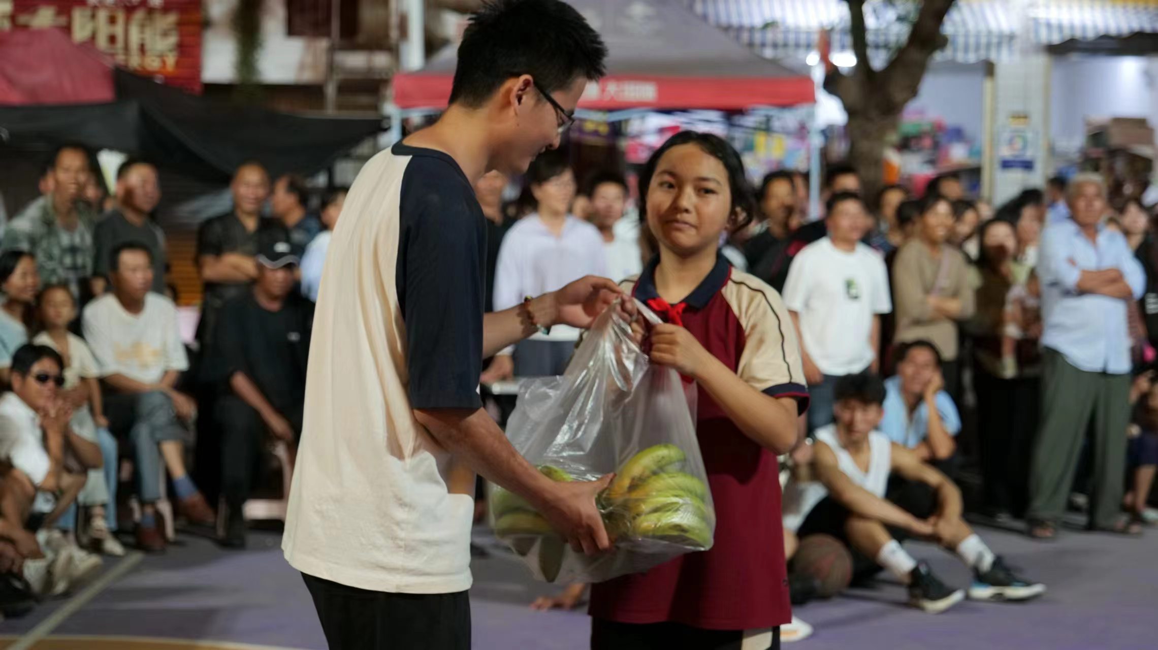 为了增强观众的参与感和体验感,本次大赛特别设置了观众互动环节。现场观众可以参与投篮互动小游戏,投进球的观众可获得主办方精心准备的土特产—东坡香蕉作为奖励,这些互动环节不仅拉近了观众与比赛的距离,也增加了比赛的趣味性和观赏性。