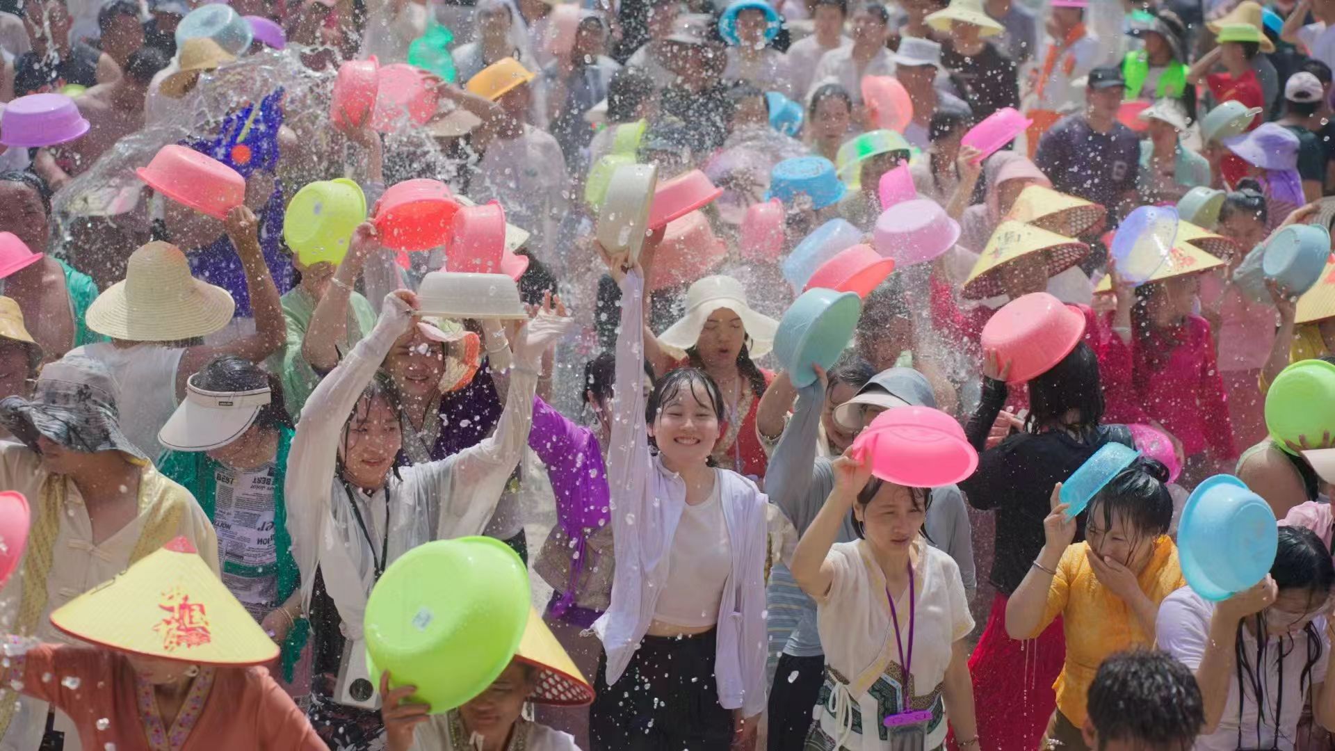祈民族之愿,泼吉祥之水。随着泼水狂欢正式开始,整个泼水广场瞬间沸腾,从四面八方汇聚而来的各族群众早已按捺不住激动的心情,尽情洒着代表幸福、吉祥的水,表达着相互间的祝福,它像一幅流动的画卷,将民族文化与情谊交织在一起,让人们在欢乐与祝福中切身感受各民族共同团结奋斗共同繁荣发展的美好。