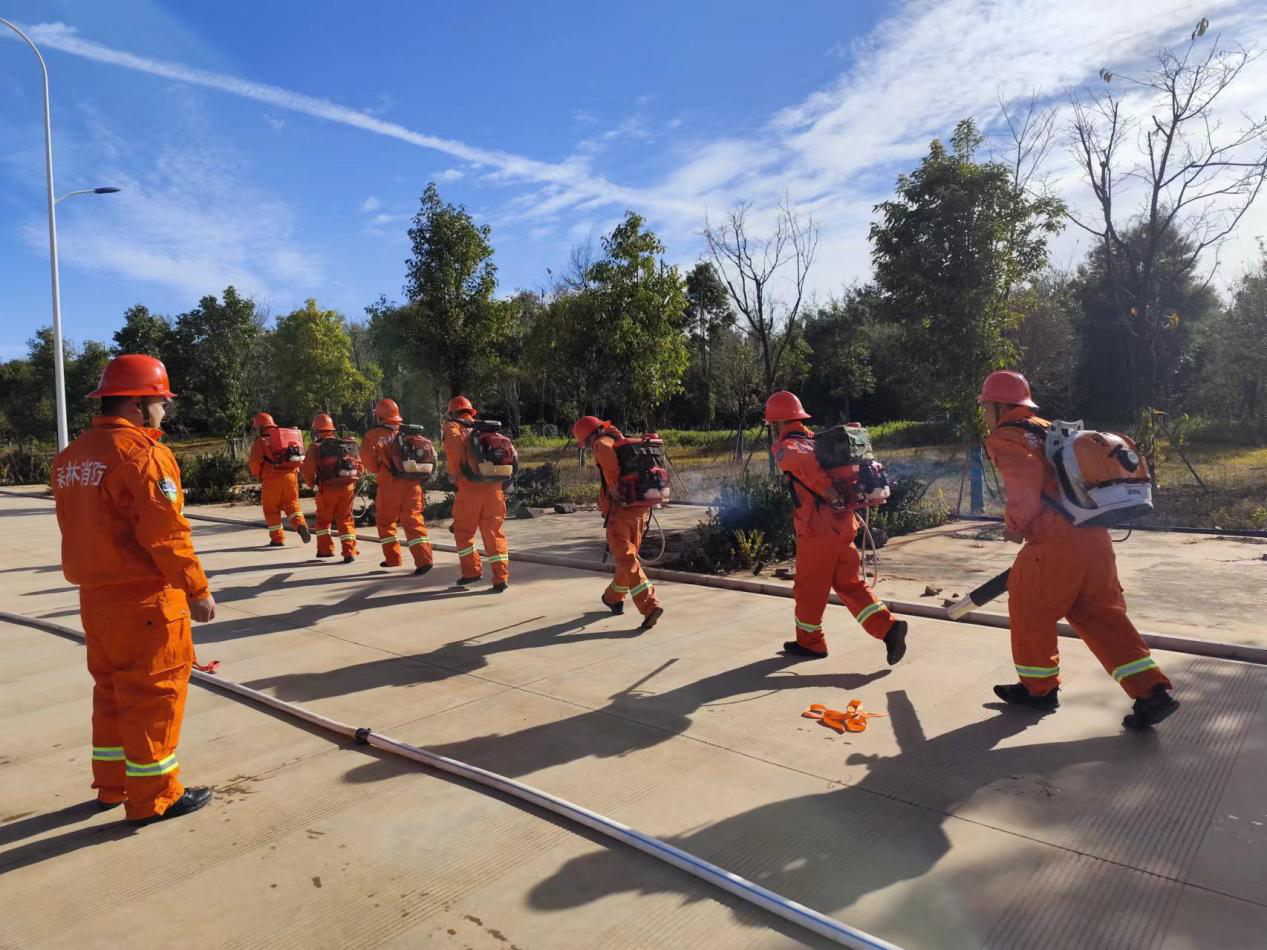 训练场上队员们精神抖擞、热情饱满地进行了体能强化训练,包括5公里集训、水袋架设等项目,以提升自身的耐力和身体素质,确保在应对森林火灾时能够保持良好的体能状态。专业的灭火技能也是培训重点之一,队员们认真学习并实操了风力灭火机、高压喷雾水枪等各种灭火器具,熟练掌握了操作技巧。此外,还针对不同的火灾情景进行了模拟演练,通过团队协作和战术配合,提高应对突发情况的能力。
