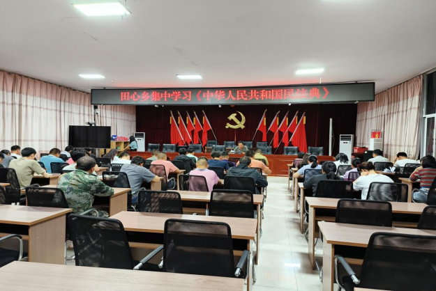 田心乡认真落实领导干部应知应会党内法规和国家法律清单制度,把民法典学习作为党委理论学习中心组及会前学法重要内容。2024年5月份以来,党委理论学习中心组专题学“典”1次,职工例会会前学“典”2期,重点学习了民法典颁布的意义、亮点,结合农村常见婚姻家庭、相邻关系等矛盾纠纷案例,学习了相关内容。“典”进机关活动,全面提高了领导干部运用民法典维护人民权益、化解矛盾纠纷、促进社会和谐稳定的能力和水平,进一步夯实了法治政府建设基础。