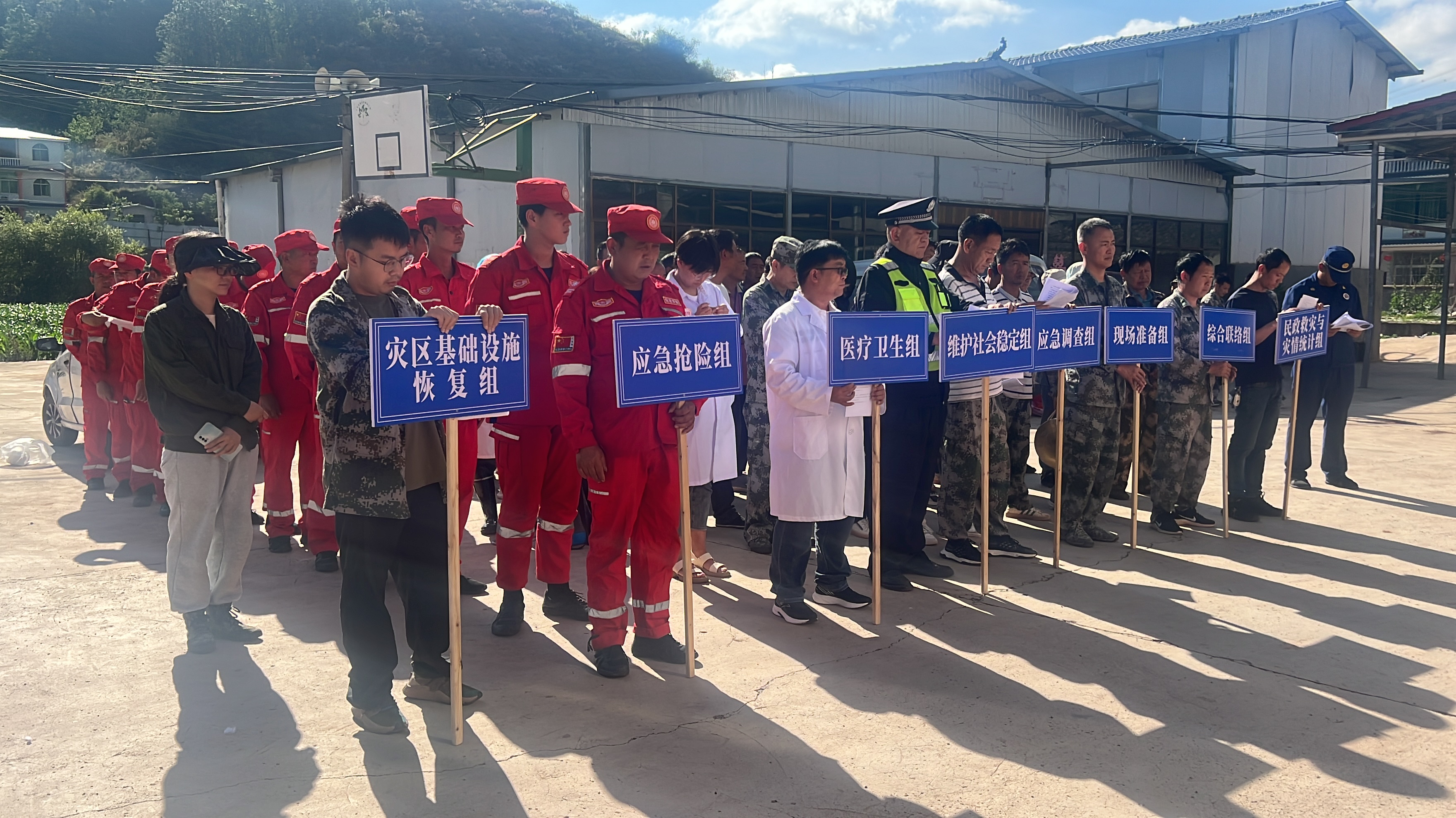 为进一步提高全镇广大干部和群众应对突发地震、地质灾害的应急反应能力和防灾避灾意识,在临灾时能快速有效撤离避让,努力减轻地震、地质灾害造成的损失,确保人民群众的生命财产安全。2024年6月4日上午,镇部分领导班子,相关中心站所工作人员,镇应急救援队,17个村党总支书记、主任,地质灾害隐患点监测人员,过沟箐村群众代表等80余人参加。