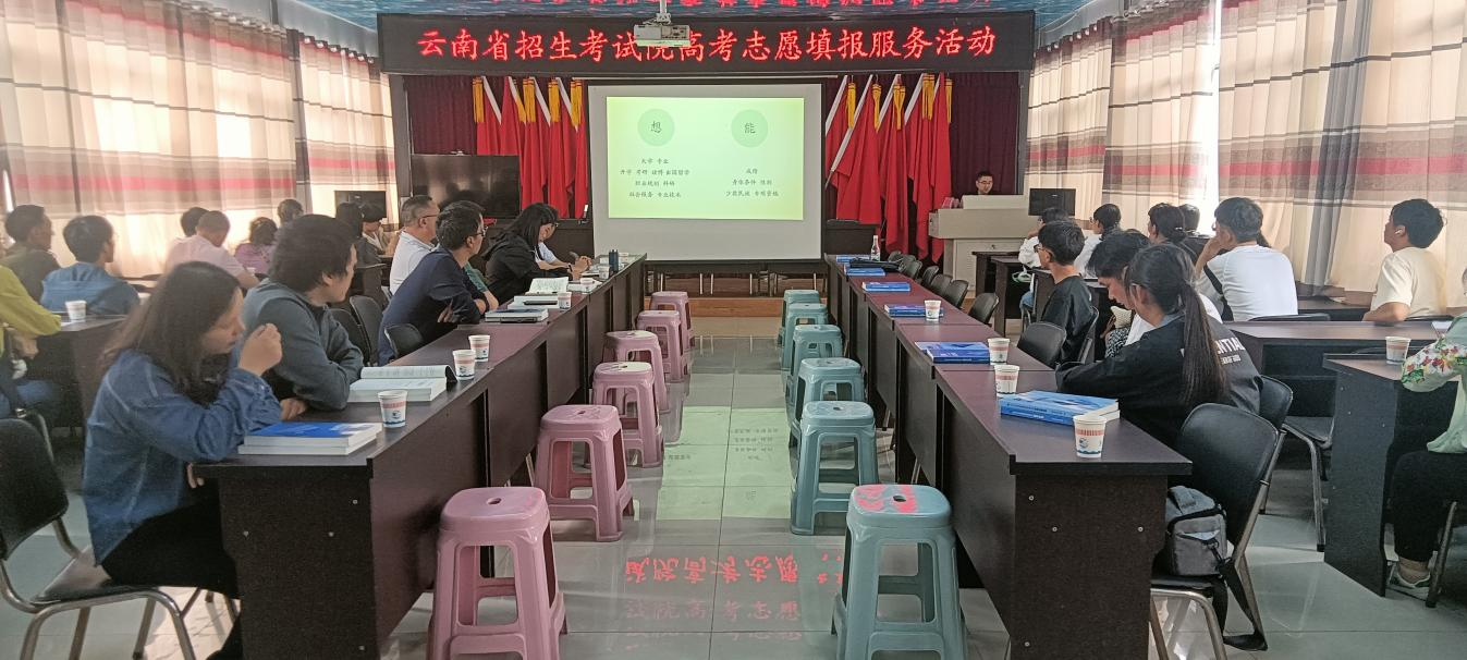 会议由云南省招生考试院驻海子村第一书记饶敏波主持。会上杨仕印老师从专业、科学、合理的角度多方位就2024年招生政策、如何分析分差、是否需要服从调剂、如何填报高考志愿等进行详细的讲解;省招生考试院招生处处长雷棉炘处长就省招考院最新推出的高考志愿填报辅助系统作出了使用指导,讲解内容细致,重点突出,现场座无虚席,此次讲座惠及考生及家长300余人次。