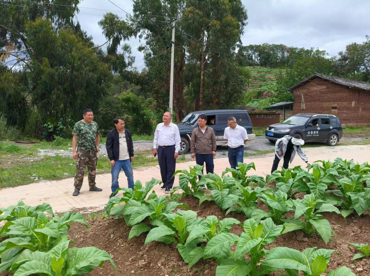 在新寨烤烟种植地,周有方实地查看、详细了解本年度烤烟种植品种、种植规模等情况,针对农户种植过程中遇到的困难和问题,现场研究解决办法。周有方强调,要多措并举,因地制宜采取蓄水、引水、抽水等方式保障烤烟生产用水;要科学有效应对极端天气,强化监测预警,最大程度减少农民损失;要打好烟叶产业“特色牌”,确保烤烟生产稳步推进,扎实推动烟叶产业高质量发展。