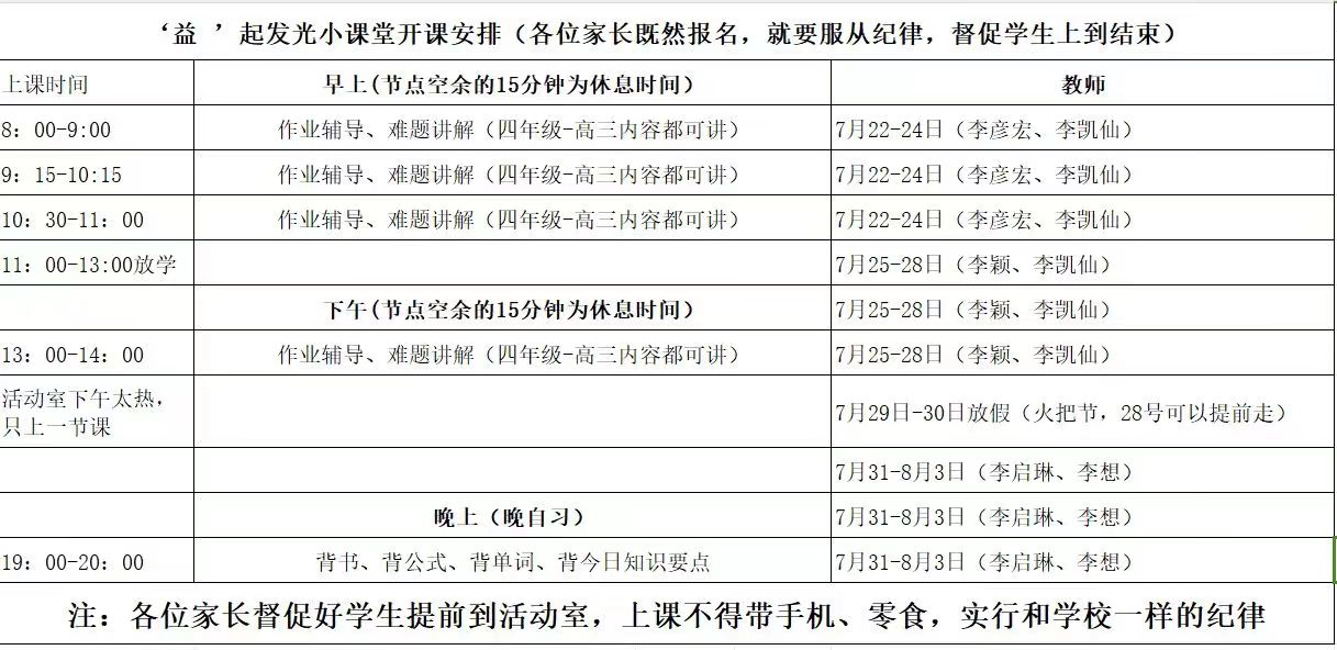 公益小课堂有6名老师,其中有学校的老师、有正在上大学的大学生也有今年高考成绩600分以上的高中毕业生。他们怀揣梦想勇往直前亦不忘向他人伸出温暖有爱的手,在炎炎夏日,组建了公益教师团队在本村开启公益小课堂。服务对象主要是勐果村、小以南古村的中小学生和高中生,优先满足留守儿童需求。现在公益小课堂已经有14名学生,还有一些其他村组的学生在知道这个小课堂后都想加入一起学习。
