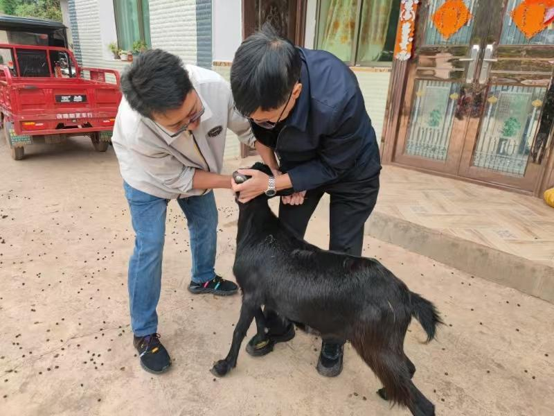 产业要发展,技术支撑少不了。杨培昌及技术人员在白路村委会驻村队员带领下,到6户云上黑山羊种公羊示范户家中进行跟踪指导,主动上门现场技术指导。他每走到一户,都要和农户细心交谈,详细了解黑山羊饲养管理、养殖效益、是否有疾病等养殖情况,然后根据每一户的实际情况,现场解答肉羊养殖户关于饲料配比、配种管理、饲养管理以及常见疫病诊治等方面的疑难问题,并提出科学实用的宝贵经验总结,并鼓励养殖户要不断探索新技术、新经验,助力白路镇肉羊产业高质量发展。