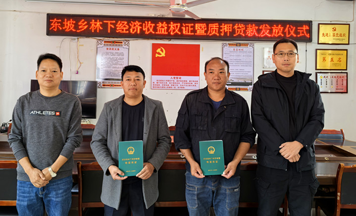 图为东坡乡首批林下经济经营收益权证暨质押贷款发放仪式