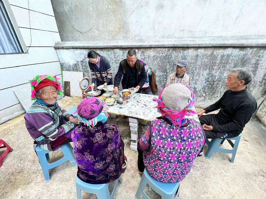 每当用餐时间临近,白路镇古黑村委会沙咪拉村的老年幸福食堂内,一股温馨而和谐的气息弥漫在每一个角落。就餐的老人们纷纷从家中带来各式各样的食材,有新鲜的红豆、香醇的腊肉、清脆的莲花白,还有嫩绿的四季豆……他们乐此不疲地将这些爱心菜肴交给炊事员,有的还主动帮忙备菜,整个厨房里洋溢着互帮互助的温情与欢声笑语。