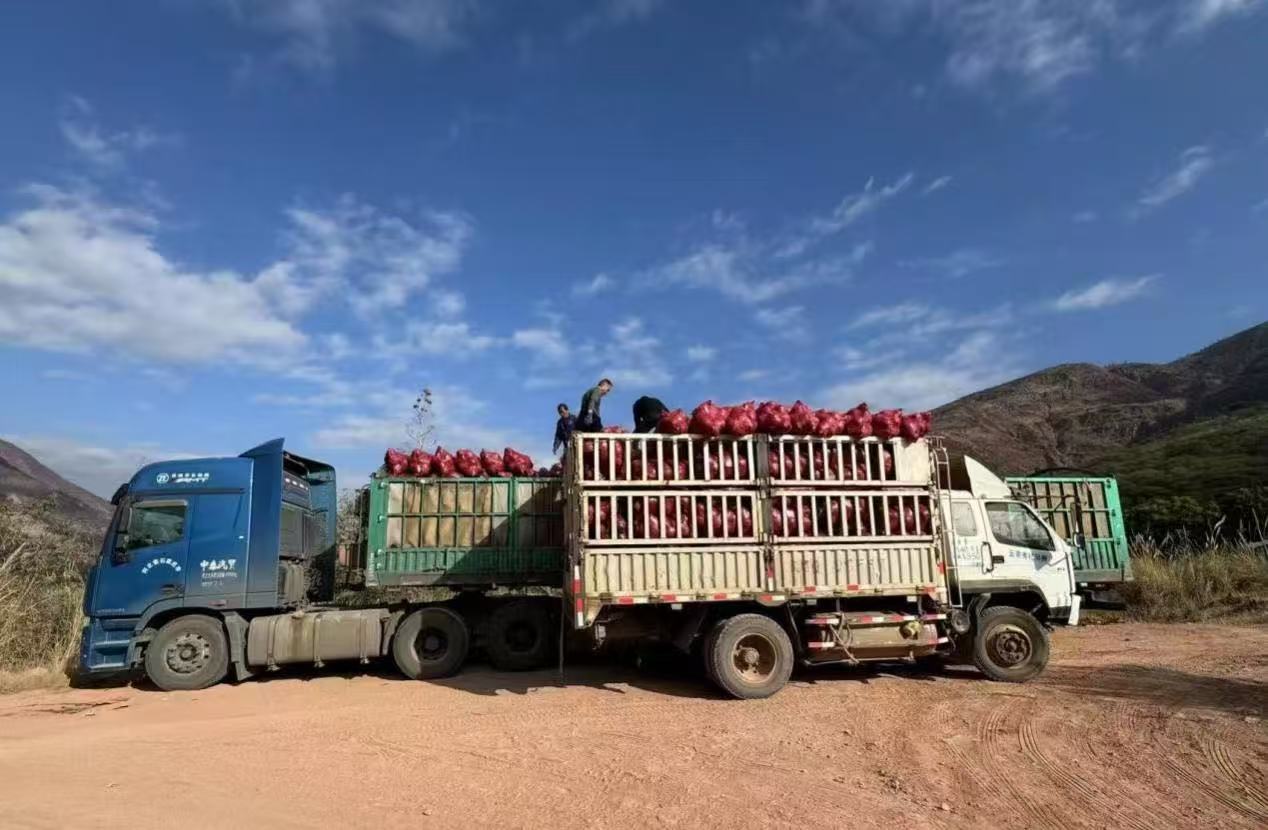 图为:紫甘蓝正在从小货车转装到半挂车,准备发往省外
