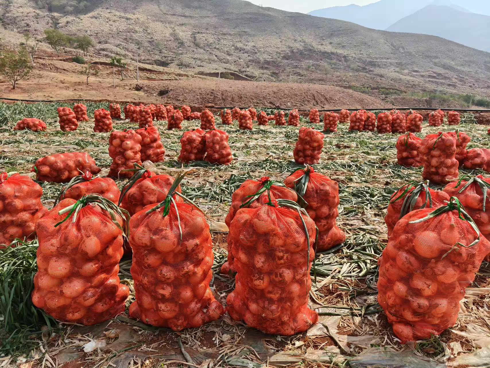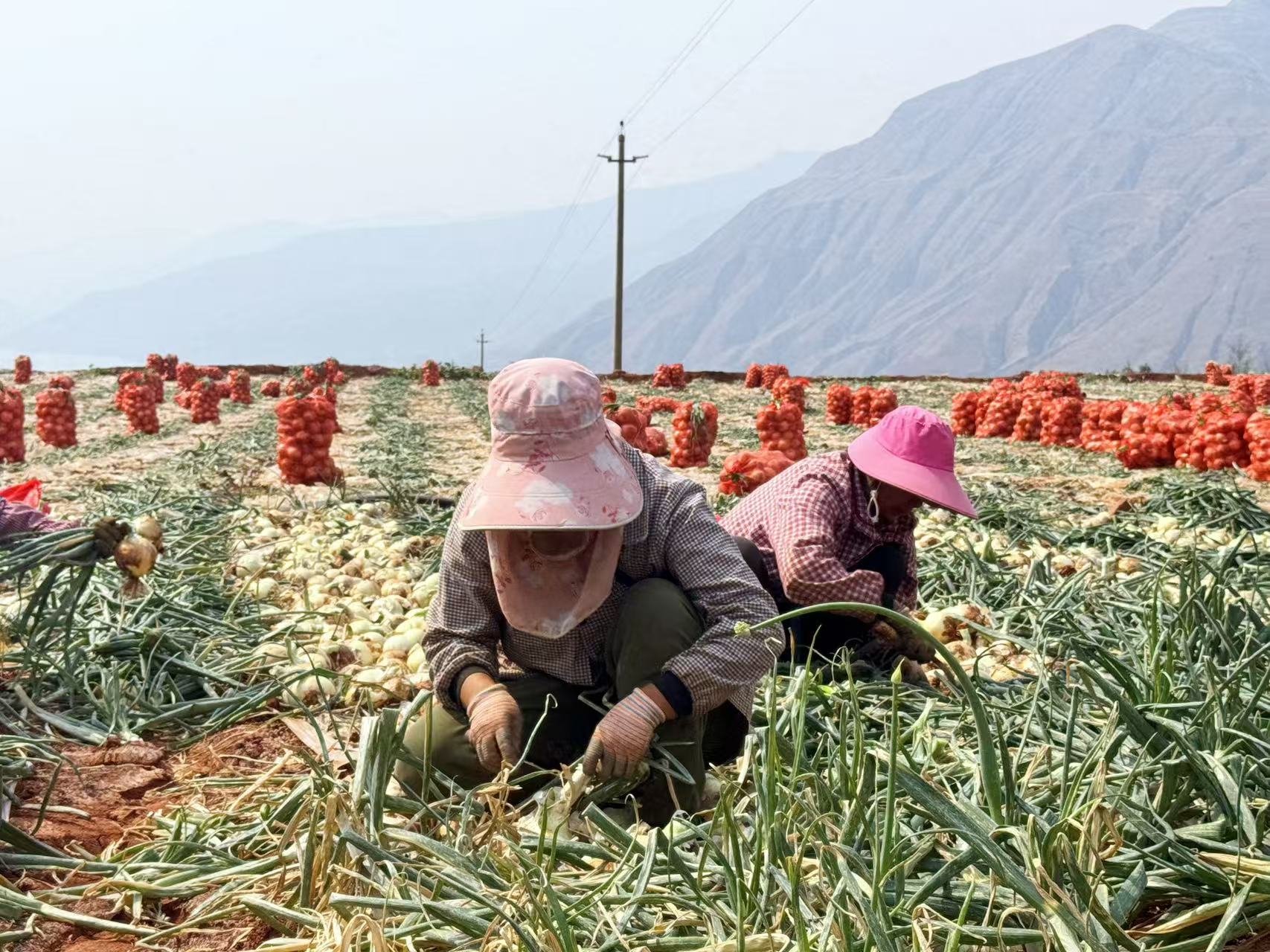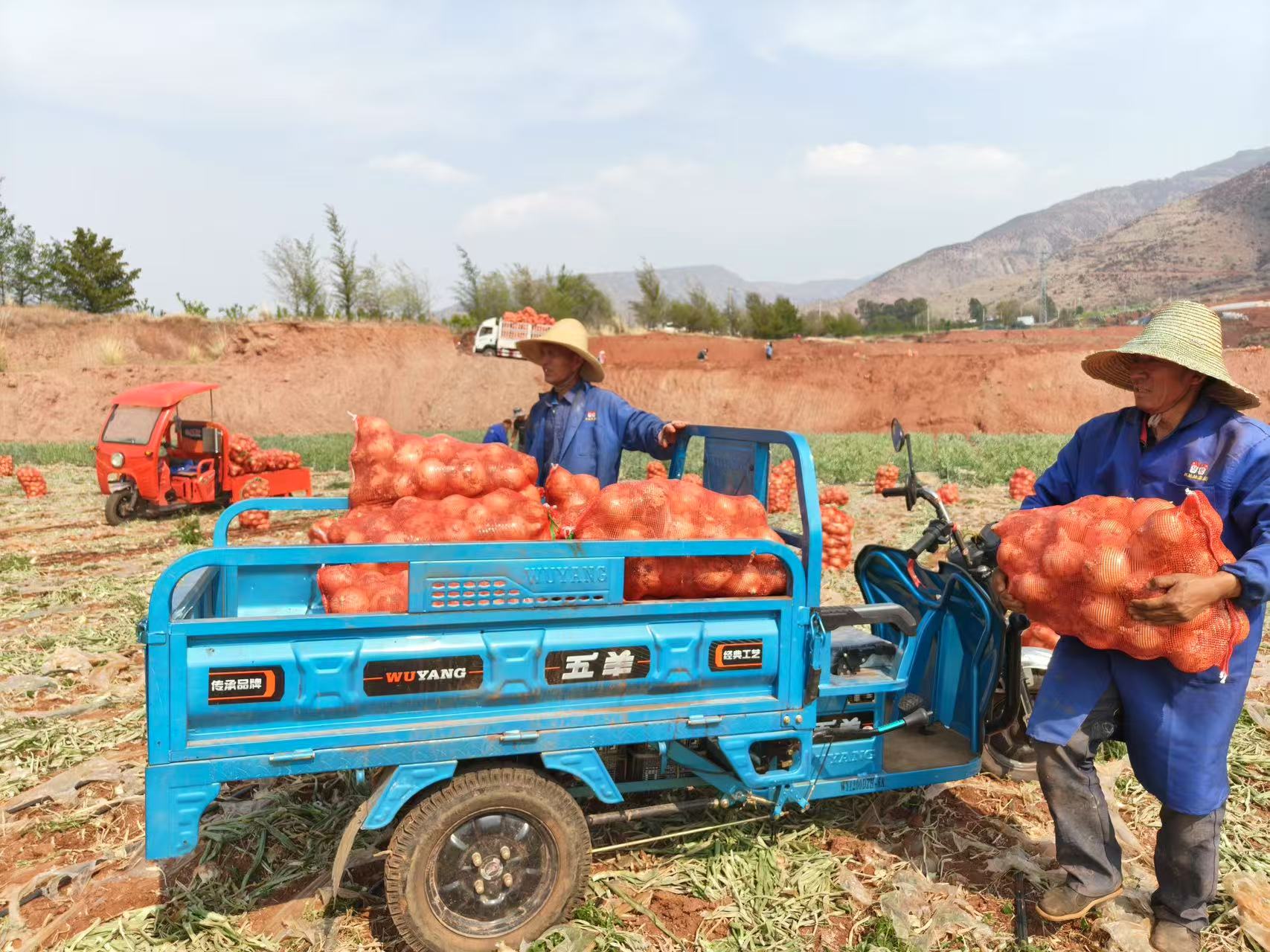 “我们根据市场需求,与经销商达成合作意向,今年种植了130亩洋葱,平均每亩产量可达7-8吨,预计产值在163-187万元。洋葱成熟后,以每吨1800元价格订购给客商,直接从地里采摘装车运往山东青岛,加工完毕后,坐上渡轮出口到韩国和日本。”基地负责人杨明学说道,“洋葱在育苗、覆膜、种植、除草、管理、收获等不同环节,都需要投入大量人工,现在洋葱进入收获期,吸引了周边大量群众前来务工,一天最多的时候有80多个工人。”