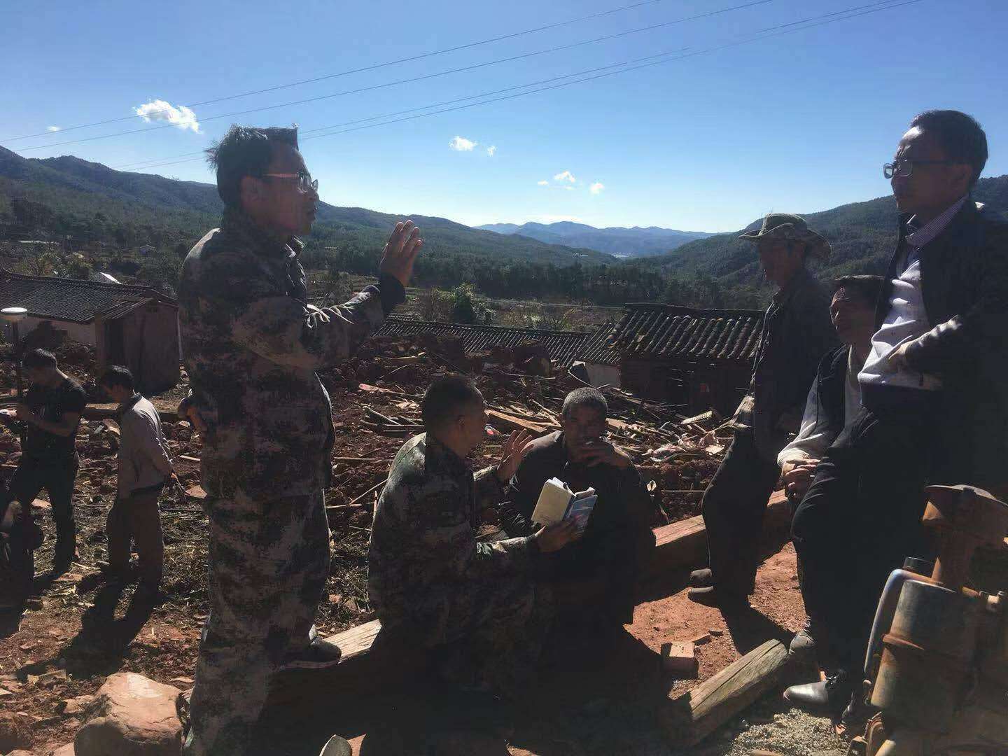 图3 镇党委书记张美权认真记录易地搬迁旧房拆除信息