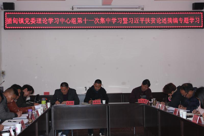 2018年12月14日18:30,插甸镇组织镇党委理论学习中心组参学人员进行党委理论学习中心组2018年第十一次集中学习暨习近平扶贫论述摘编专题学习。会上镇党委书记张美权同志作了动员讲话,组织学习了习近平扶贫论述摘编,对“六个坚持”进行了原汁原味的学习。插甸镇2018年预脱贫出列的安德、古普、哪吐、乐茂河、水城5个村的镇挂点领导班子、村党总支书记均立足5个村的村情、贫情作了重要发言,此次专题学习进一步盘清锁定了目标任务账、任务支撑账、时序账、差距账,针对5个村脱贫出列目标任务做了深刻剖析。乐茂河村挂点领导杨海同志以“突出七抓七确保,坚持打赢脱贫攻坚决胜战”为题作了精彩发言:1.抓减贫成效核查,确保“610”指标达标;2.抓风险排查,确保精准识别和退出;3.抓住房保障,确保群众安居;4.抓产业谋划,确保收入稳定;5.抓档案管理,确保数据精准;6.抓环境整治,确保卫生整洁;7.抓矛盾调处,确保群众满意。镇长张建云同志针对当前重点工作安排了近期工作。镇党委书记张美权同志针对下一步工作提出提高站位、形成共识,科学调度、统筹推进,聚焦问题、狠抓落实,严管厚爱、发挥作用的工作要求。