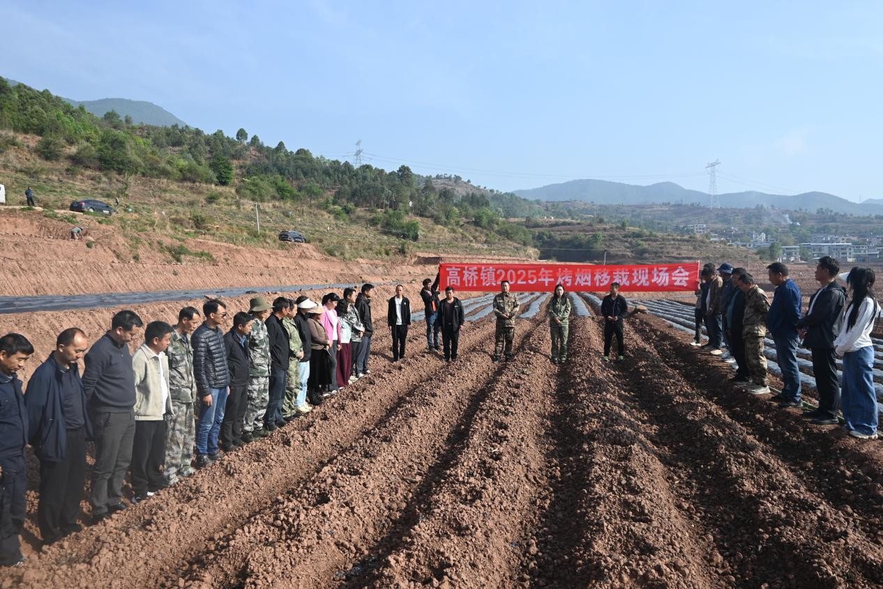 为抢抓烤烟移栽黄金期,4月25日,高桥镇组织召开 2025 年烤烟生产工作部署会议暨现场观摩。党政班子成员、部分站所负责人、烟叶站工作人员、烤烟辅导员及各村党总支书记等50余人参加。