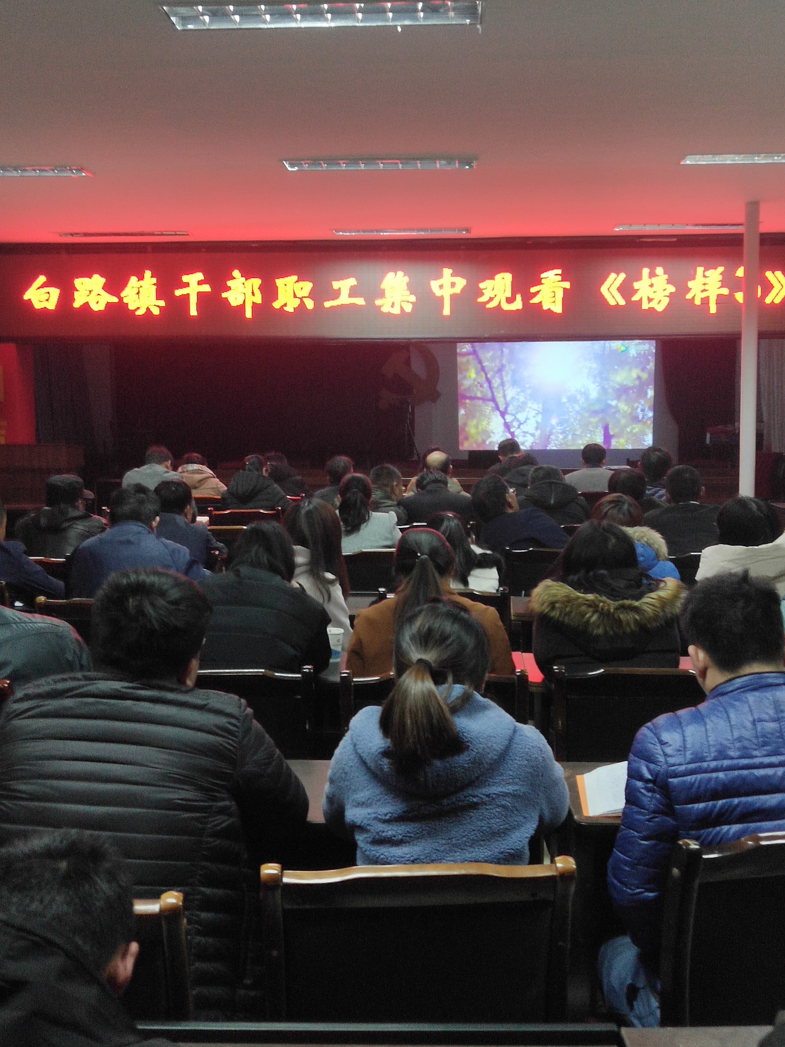 为继续深入推进“两学一做”学习教育,进一步深化干部职工党性教育,提高党性修养,12月20日晚,白路镇组织全体干部职工观看了《榜样3》专题节目,全镇60余名干部职工在镇政府大会议室观看了本次节目。
