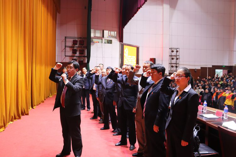 会议首先进行重温入党誓词仪式,在镇党委书记蒋先常的领颂下,全体党员干部面对鲜红党旗,紧握右拳,庄严宣誓。