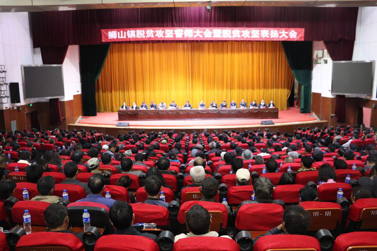 2019,恰逢新中国成立70周年,改革开放走过40周年,也是全县脱贫摘帽、全镇脱贫攻坚决战决胜的关键之年。为聚焦目标、补齐短板,全面夺取脱贫攻坚根本性胜利,1月7日,狮山镇召开脱贫攻坚誓师大会暨脱贫攻坚表扬大会。县委常委、县委办主任左刚、县政协副主席李建云、镇党政班子领导、镇属各机关事业单位全体干部职工、村社区村组干部、驻村工作队员、部分企业代表、先进个人代表共400余人参加会议。
