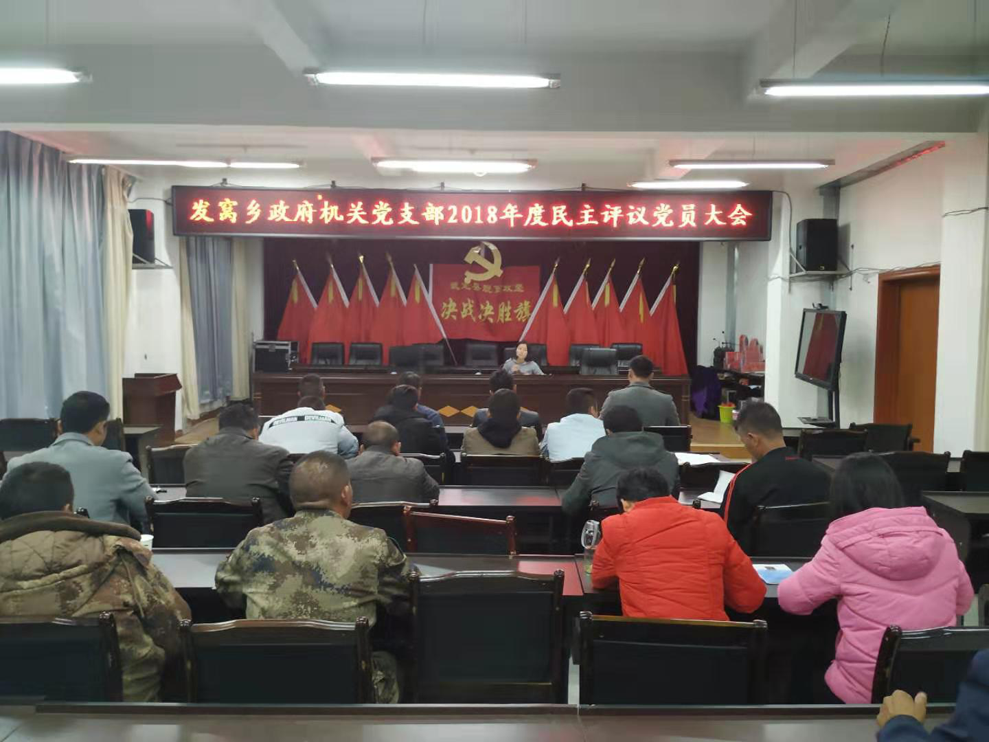 发窝乡政府机关党支部于2月25日晚7:00在乡政府三楼会议室开展了2月“主题党日活动”,应参会26名党员,实际参会21名党员。会议主要分两项议程:一是观看《回望延安》文献纪录片;二是开展2018年度政府机关党支部民主评议党员。