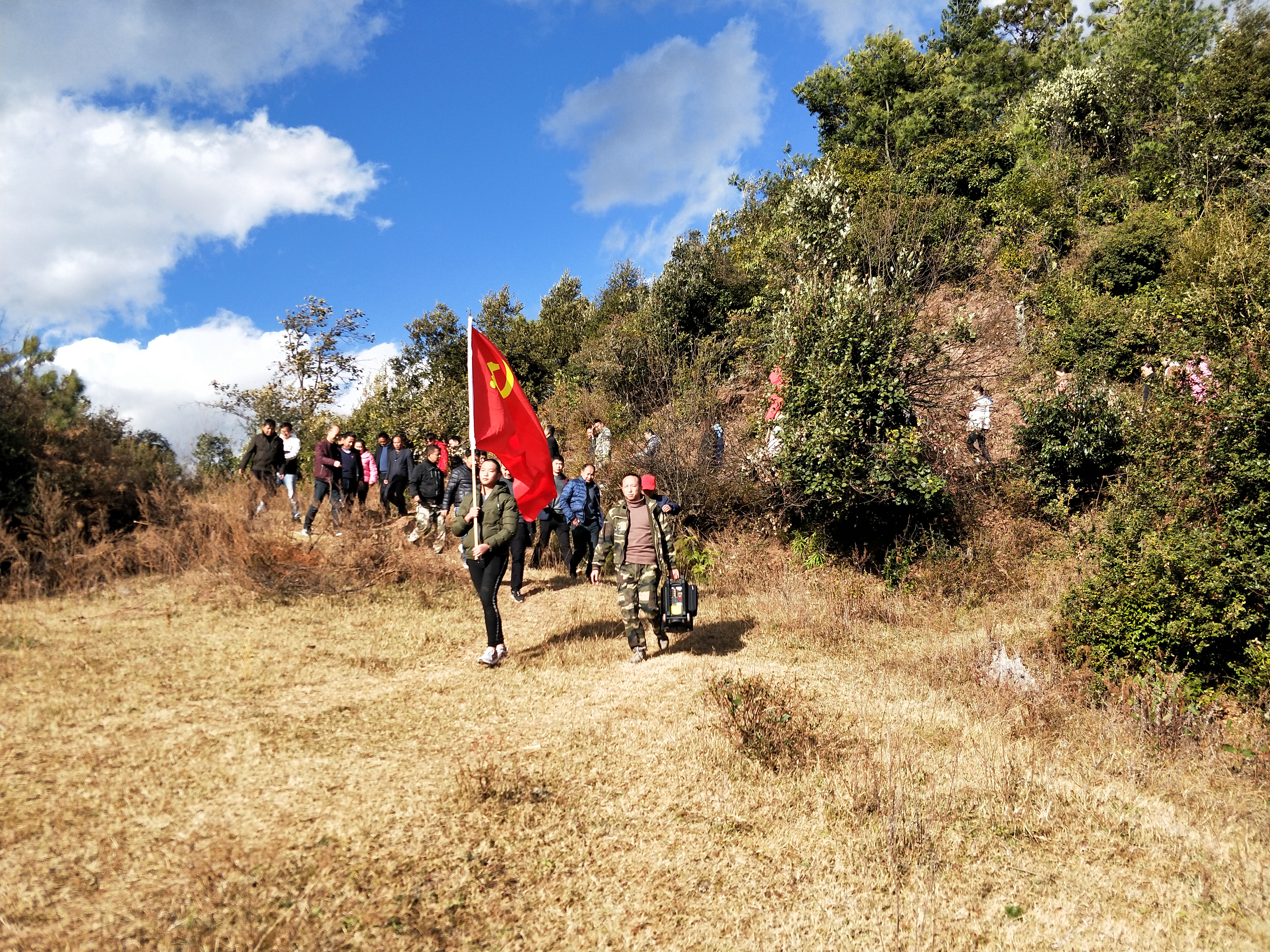参加活动的党员精神焕发,从和创药业基地出发,沿1935年红一军团途径木高古的路线,在爱国歌曲的熏陶下,党员兴致高涨、加速前进,爬坡过坎,累并快乐着。