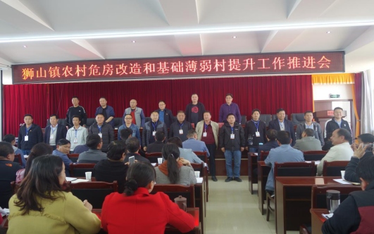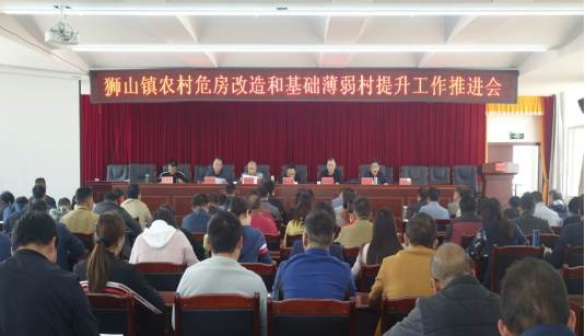 3月13日,狮山镇召开农村危房改造和基础薄弱村提升工作推进会。会议由镇党委书记蒋先常同志主持,县级各挂包单位负责人、镇党政班子成员、各村委会书记、驻村第一书记、机关站(所)负责人、危改施工方共计80余人参加会议。