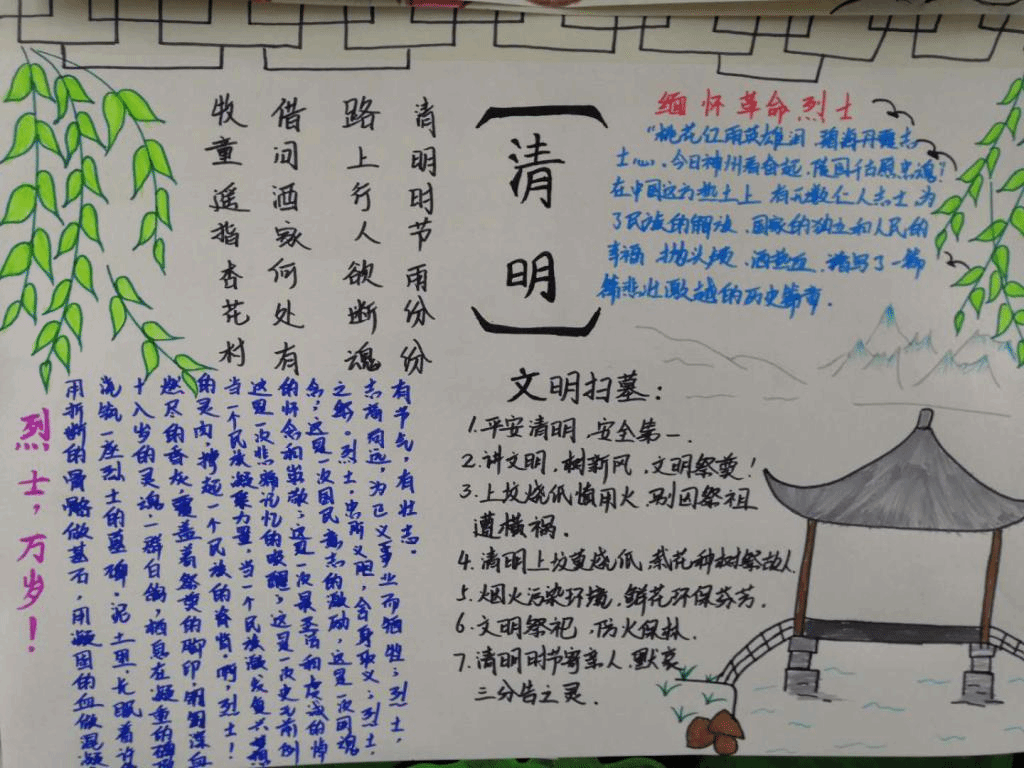 今年清明节期间,根据上级文件精神和我校实际情况,我校继续深挖清明节的文化内涵,引导全体师生弘扬传统文化、缅怀革命先烈、倡行文明风尚,进一步增进全体师生爱党、爱国、爱家的思想情感,结合实际情况,在学生中组织开展了以“缅怀先烈,文明祭扫”为主题的教育活动。