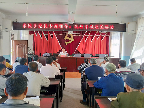 培训班上,李俊军从东坡乡宗教基本情况、乡民族宗教的主要工作、党的宗教工作方针政策、宗教基本知识、民族宗教相关的法律法规等五个方面用通俗的语言,生动的事例为大家做了深入浅出的讲解。