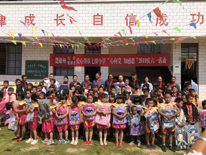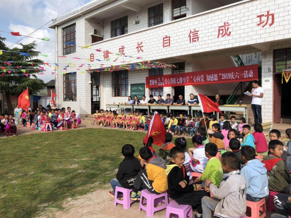 2019年5月30日,楚雄州纪委州监委爱心帮扶七排小学“心向党知感恩”庆祝“六一”儿童节活动在七排小学拉开帷幕,州纪委州监委正处级监察员速勇、武定县驻村工作队副总队长马建康、武定县猫街镇党委政府领导、驻村工作队员及村委会干部与七排小学的同学们一起度过了一个精彩纷呈的儿童节。
