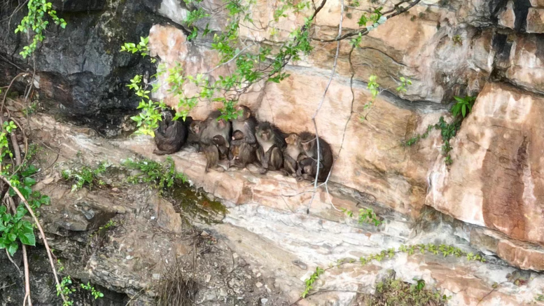 己衣大裂谷崖壁猴群。刘志兵 摄