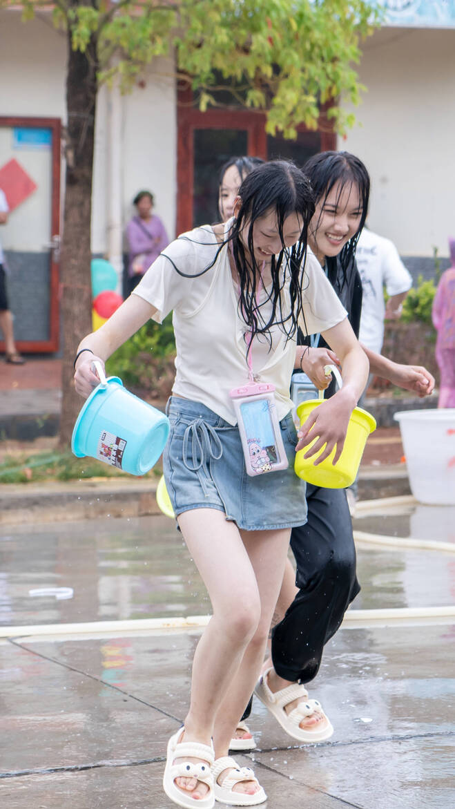 中午时分,泼水狂欢正式开启,象征着幸福、健康的吉祥之水瞬间从人群中飞洒出来,泼水的氛围感染了在场的每一个人,大家相互泼水,表达美好祝福,在泼水的人群中,有的还没反应过来,就被四面八方飞溅而来的晶莹水花湿透全身,广场上,随处可见或提着水桶、或拿着小盆、或手持水枪、全身湿透仍在全力“开战”的“泼手”们,大家不停地取水、泼水,你来我往,互相泼洒,泼得人睁不开眼,泼得人幸福欢畅,泼出了丰收的希望,泼出了欢乐和激情。