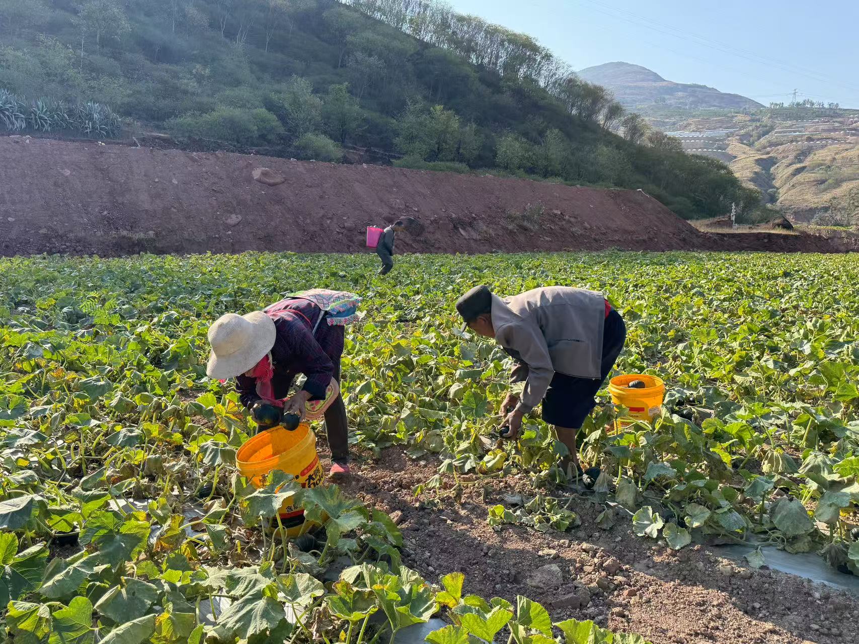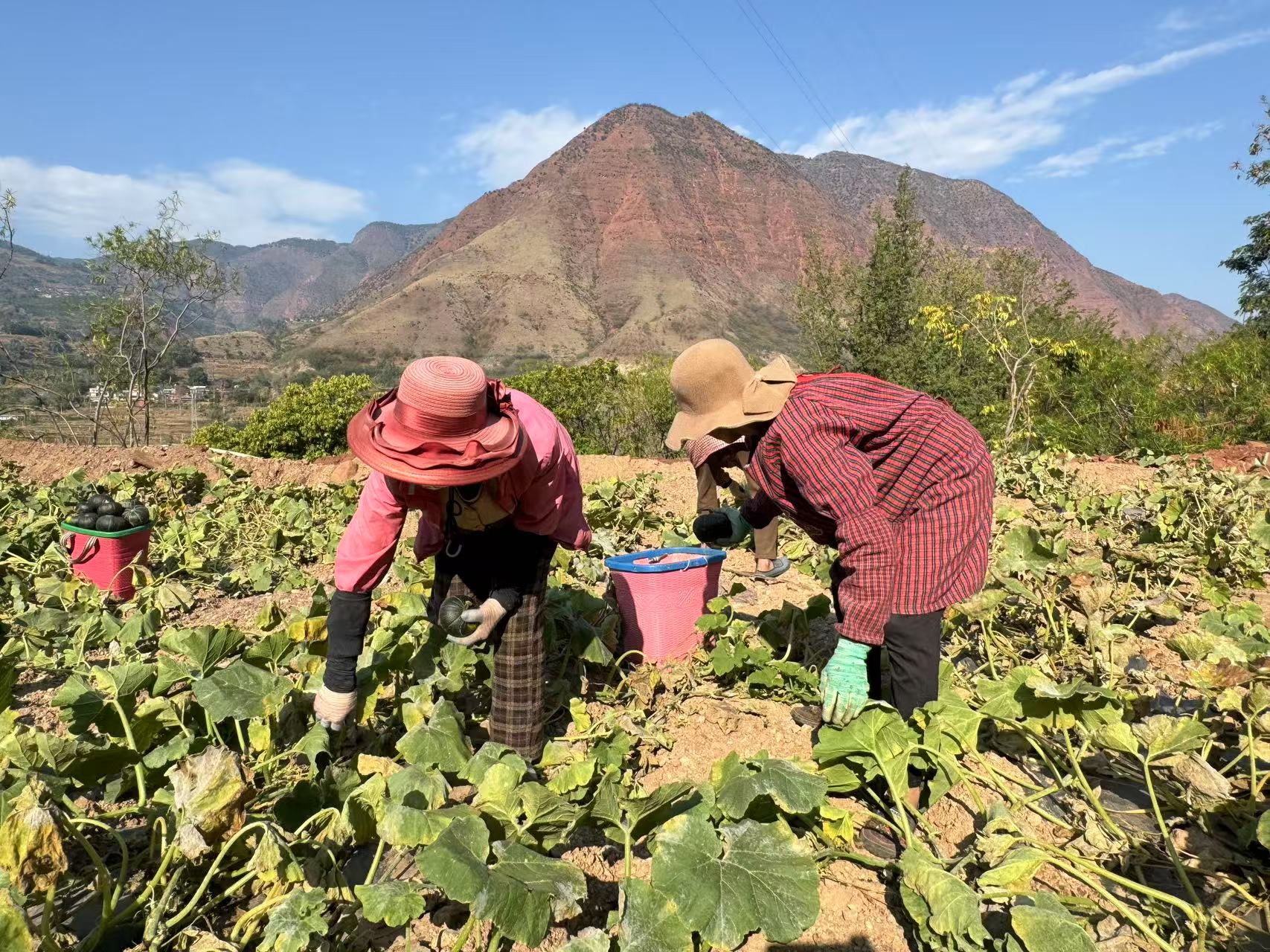 “今年我和所所卡村致富带头人文金印首次尝试合作种植贝贝南瓜,在平田和必丰甸两个村总共种植了140亩,亩产量约1000-1200公斤。之前在短视频平台发布了贝贝南瓜即将成熟的视频后,就有好几个采购商主动联系我,想要收购。我们现在平均每天用工40人,最多是一天80多个工人进行采收,采摘完之后主要是发往北京、上海、陕西等城市,按照目前市场价格,预计年产值能达到80万左右。”蔬菜基地合伙人杨明学说道。