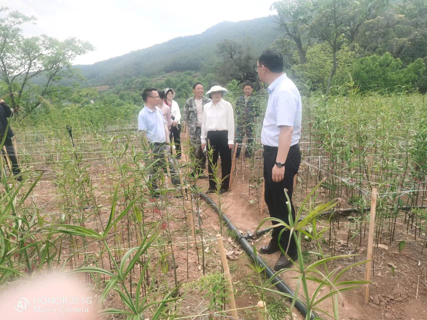 2024年4月23日,楚雄州科技局党组成员、副局长郭志鑫、农村科技科科长李德江、科技成果转化中心副主任杨仙慧一行深入到武定县插甸镇老木坝村委会,对省科技厅2023年首批批准立项,由武定县科技成果转化中心承担,陆良爨乡绿圆菇业有限公司、普洱市玉林林业开发有限公司、玉溪玉浦生物科技开发有限公司、武定县老木坝种养殖专业合作社、云南省农业科学院生物技术与种质资源研究所、云南省林业和草原技术推广总站等企业、科研院所、技术推广服务单位参与实施的建设武定县老木坝乡村振兴科技创新村项目进行调研督导。武定县工信商务科技局局长杨建华、副局长张正贵、插甸镇镇长杨旭保陪同调研督导。
