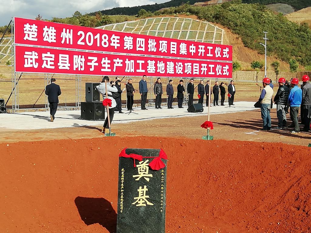 2018年12月28日下午,武定县2018年第四批项目集中开工仪式暨武定县附子生产加工基地建设项目在武定县禄金工业园区开工,州委书记杨斌、州县领导及相关部门出席了开工仪式。