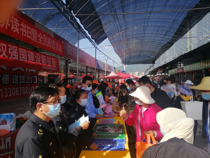 4月24日星期天,县市场监管局联合县委宣传部、县发改局等几家成员单位采取接地气、聚人气、有温度、贴进群众的宣传方式在城北农贸市场开展知识产权宣传活动。现场设立县宣传咨询点,耐心解答群众提出问题,发放《知识产权服务指南》《中华人民共和国商标法》等宣传资料,大力宣传《知识产权强国建设纲要》《“十四五”国家知识产权保护和运用规划》《中华人民共和国专利法》《中华人民共和国技术合同法》《中华人民共和国著作权法》《云南省“十四五”知识产权发展规划》《中华人民共和国价格法》《关于商品和服务实行明码标价的规定》等法律法规。