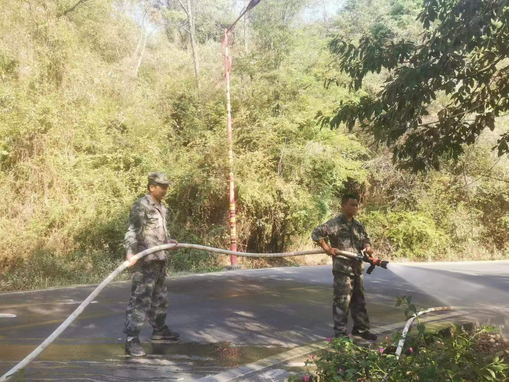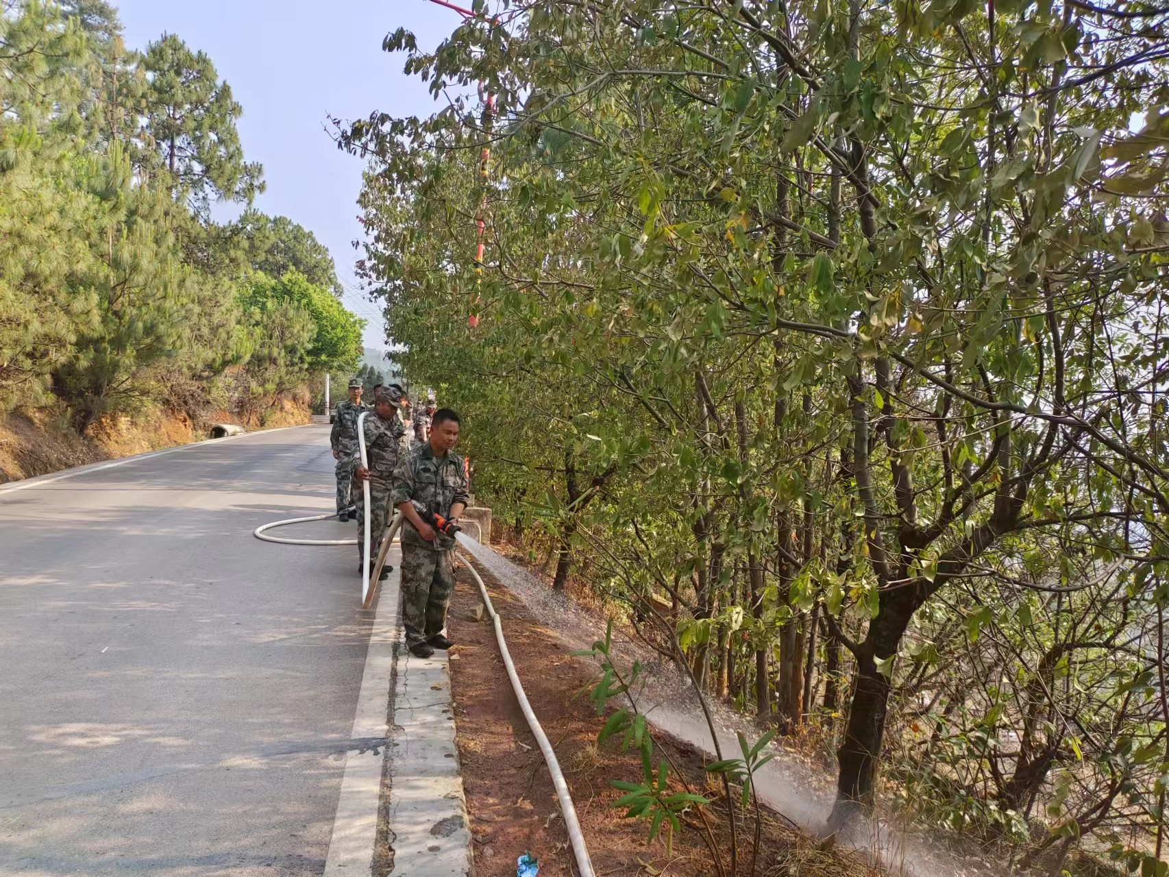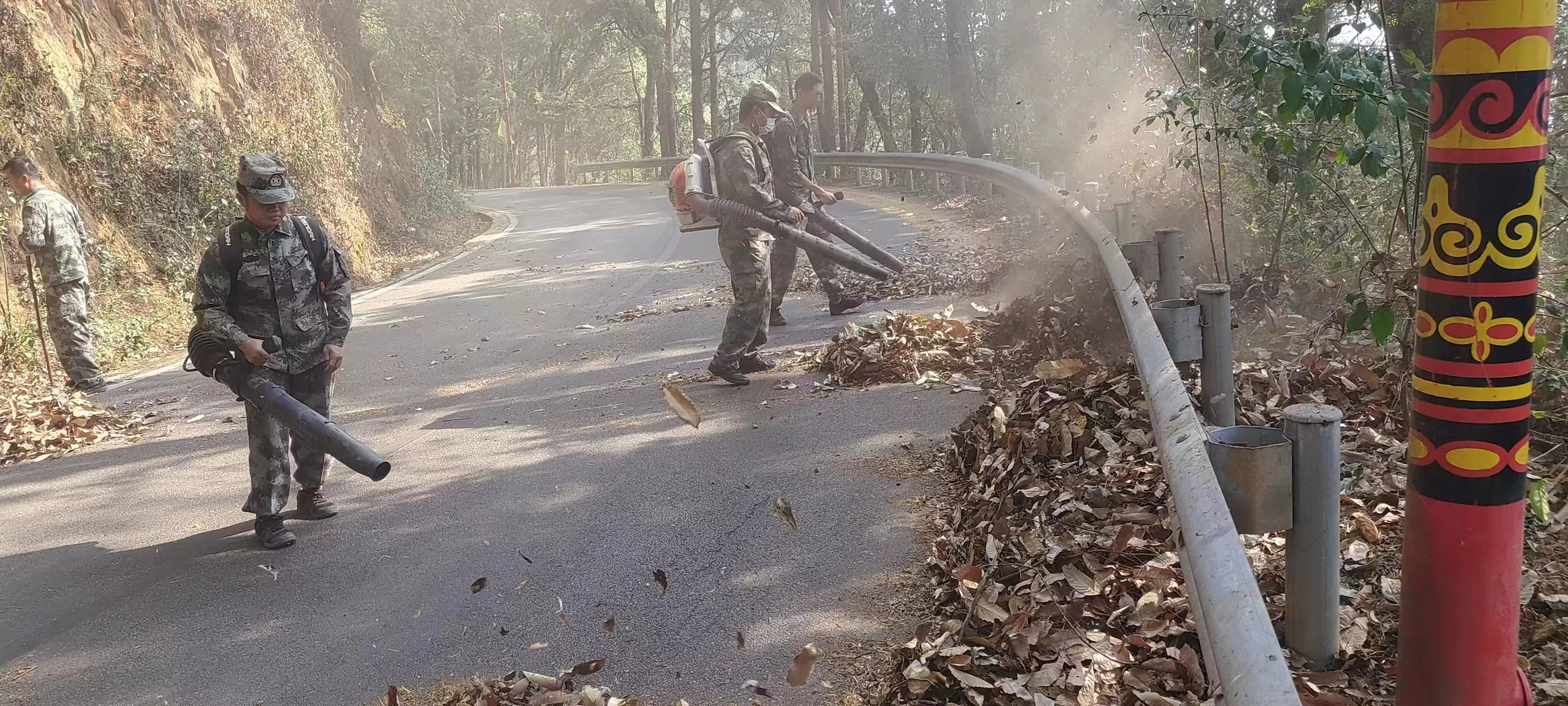 狮子山是州级自然保护区,也是风景名胜区,更是广大群众休闲游乐、锻炼健身和避暑赏景的好去处。由于今年以来气温持续高温干旱,风景区内林下可燃物不断增加,加之游客较多,野外火源管控难度也随之增大,给狮子山森林防火工作带来了很大的挑战。为了消除森林火灾隐患,确保狮子山不发生森林火灾,经过摸排,4月19日—21日,武定县森林防火专业队利用森林消防高压水泵对狮子山公路两旁的林下可燃物进行洒水增湿,对重度干旱的四照花、三角梅等绿植进行浇灌复绿,同时,利用风力灭火机对狮子山公路两旁的枯枝落叶进行清理,消除火灾隐患。