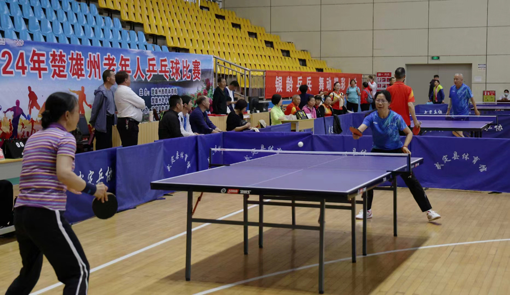 5月9日—11日,由楚雄州教育体育局和州老年人体育协会主办,武定县教育体育局和武定县老年人体育协会承办的2024年楚雄州老年人乒乓球比赛在武定县举办。来自全州10县市11支代表队120余名运动员、教练员、裁判员、工作人员参与比赛和服务工作。