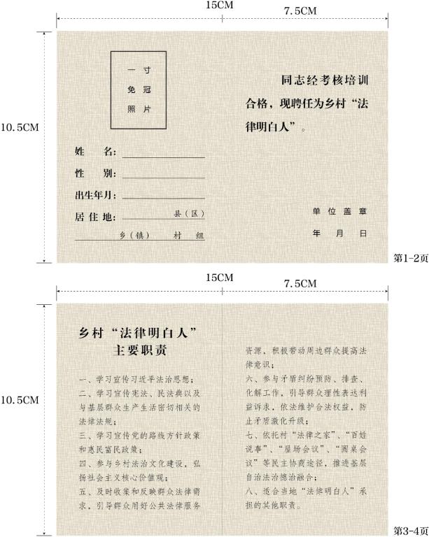 一、乡村“法律明白人”证书封面、内芯样式及说明
