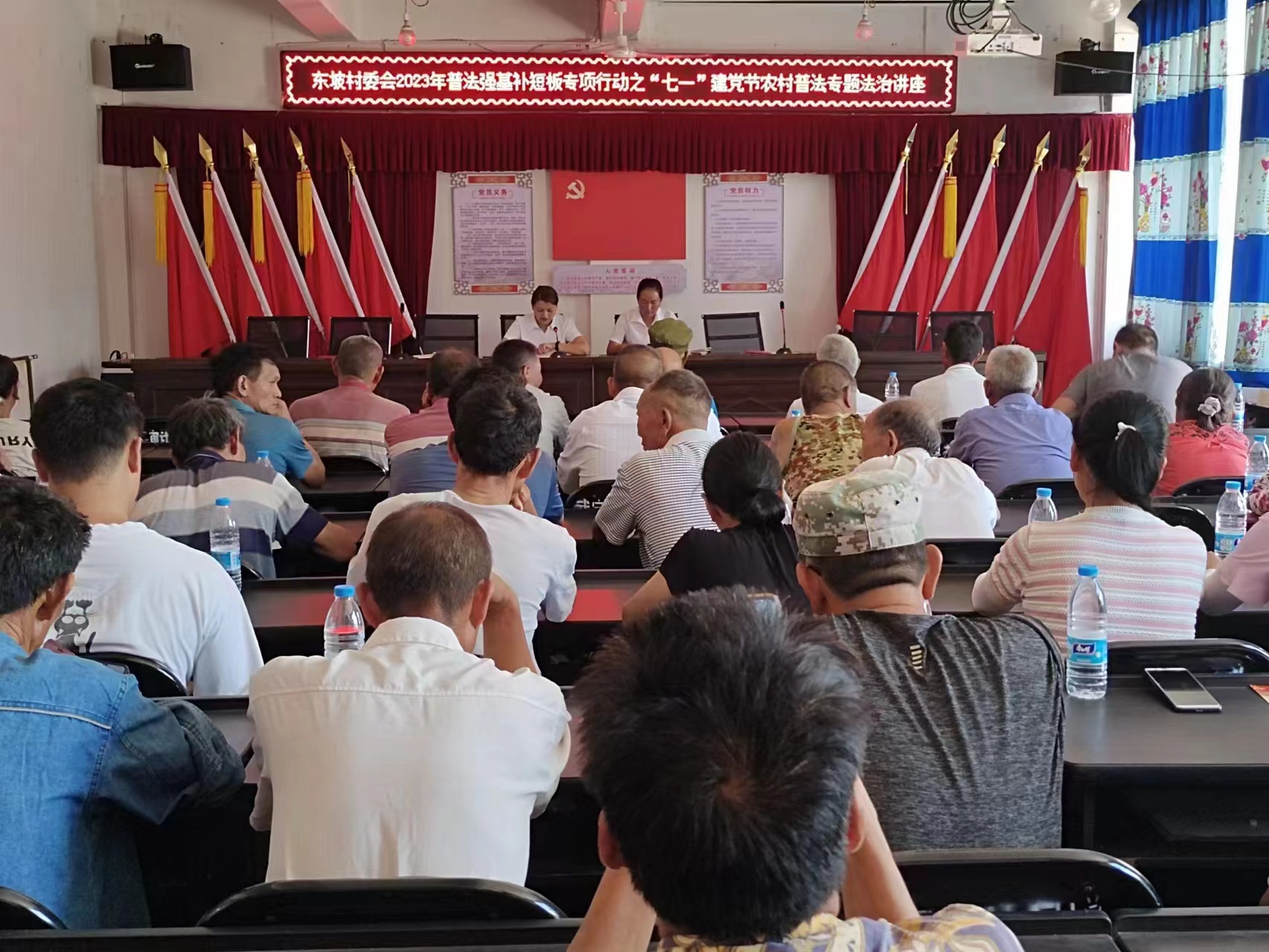 为深化“八五”普法工作,进一步加强农村法治宣传教育工作,增强广大农村基层党员群众的法治观念,推进东坡乡基层民主政治建设,维护农村稳定和谐。7月1日上午,就中国共产党成立102周年之际,东坡司法所受邀到东坡村委会开展普法强基补短板专项行动之“七一”建党节农村普法专题法治讲座,东坡村党总支60多名党员参加了专题讲座。