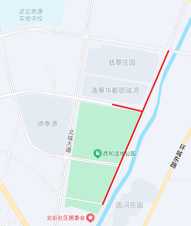 滨河路忠爱大桥至牡丹大桥段、武续路湿地公园段。
