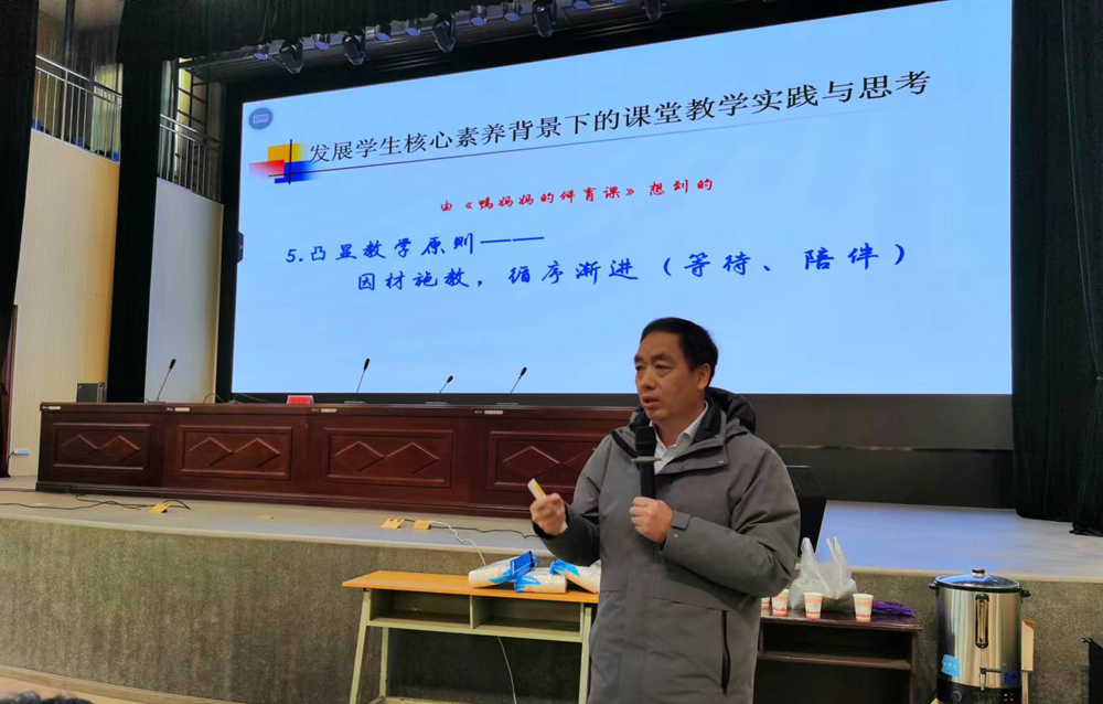 2月7日上午,湖北省洪湖市教育科学研究中心朱道荣副主任开展《发展学生核心素养背景下的课堂教学实践与思考》讲座,开启了本次第一场专题培训。朱老师围绕发展学生核心素养背景下的课堂教学实践与思考,通过学习金字塔的模式引出课堂教学模式,指导老师们既要研究“学”,更要研究“教”,通过实际案例印证学与教的教育哲理。