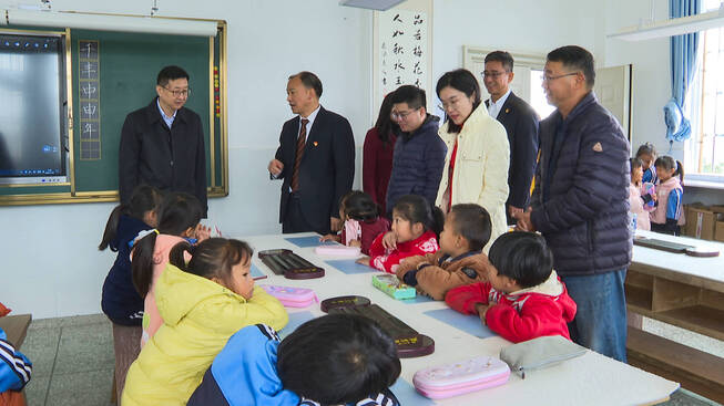 在招商基金大坝山希望小学,调研组一行先后深入梦想教室、书法课堂、学生宿舍、食堂等,与师生互动,现场观看教学和文艺表演,详细了解学校发展历史、办学特色、师资力量配备等,实地查看招商基金捐赠办公桌等设施设备以及图书角使用等情况,并就智慧校园建设、人才培养等进行深入细致交流。