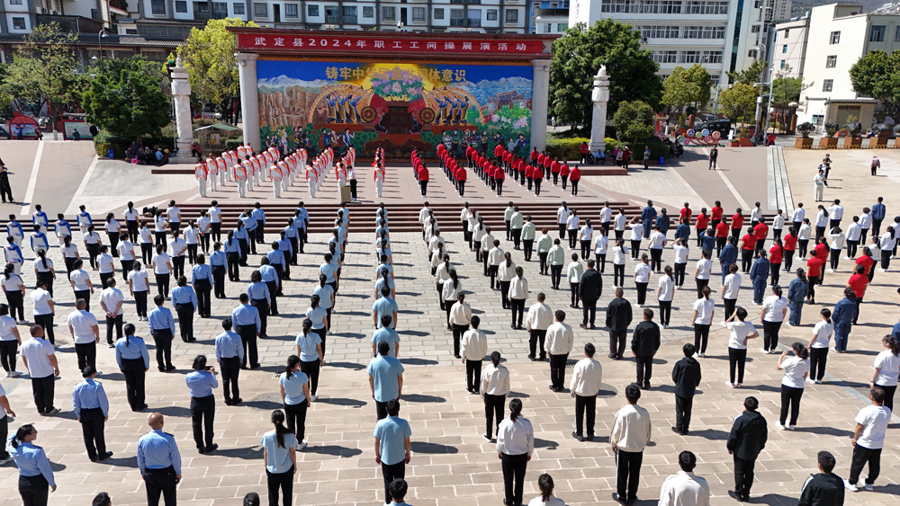 “第九套广播体操,现在开始……伸展运动,预备,起,一二三四,五六七八……”近日,伴随着轻快的旋律,由武定县总工会、武定县教育体育局联合举办的2024年职工工间操比赛在县体育馆火热开赛。