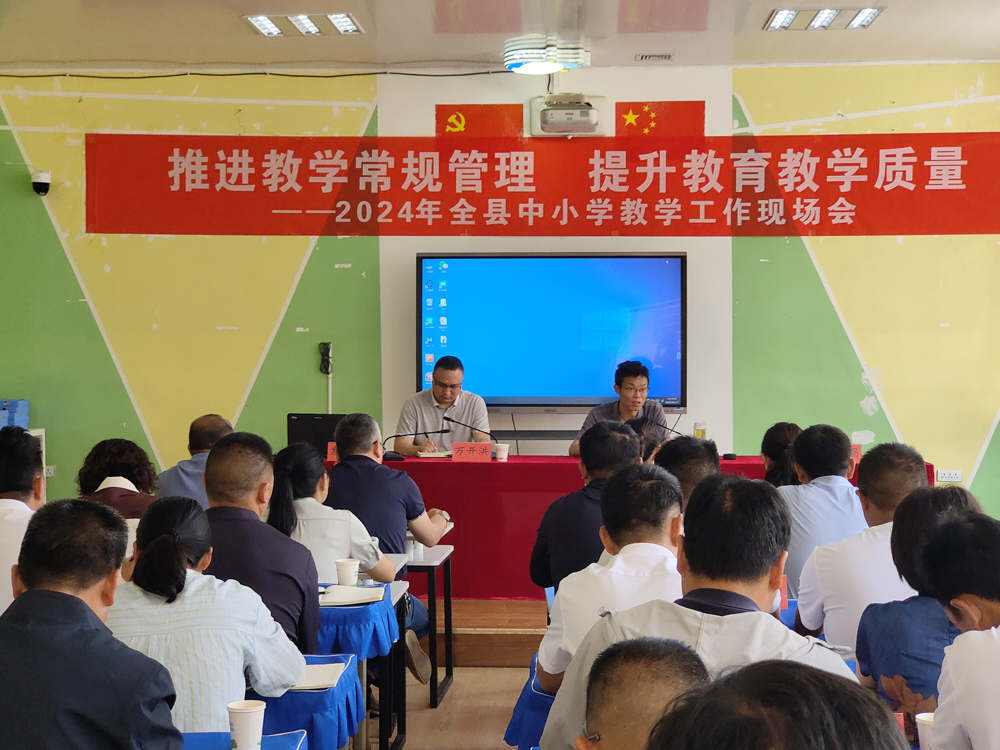 4月17日,全县中小学教学工作现场会在武定县香水小学召开。此次会议旨在进一步贯彻落实立德树人根本任务,落实《武定县中小学教学常规管理考核办法》,夯实基础,规范常规,优化学校教育教学行为,促进中小学教育教学可持续均衡优质发展,助推全县中小学教育教学质量整体提升。武定县教育工委书记、武定县教育体育局局长何毓才,副局长万开洪,教研室全体成员,县教育提质专班组成员,全县中小学校(园)长、教务(教导)主任共90余人参加会议。会议由教育体育局副局长万开洪主持。