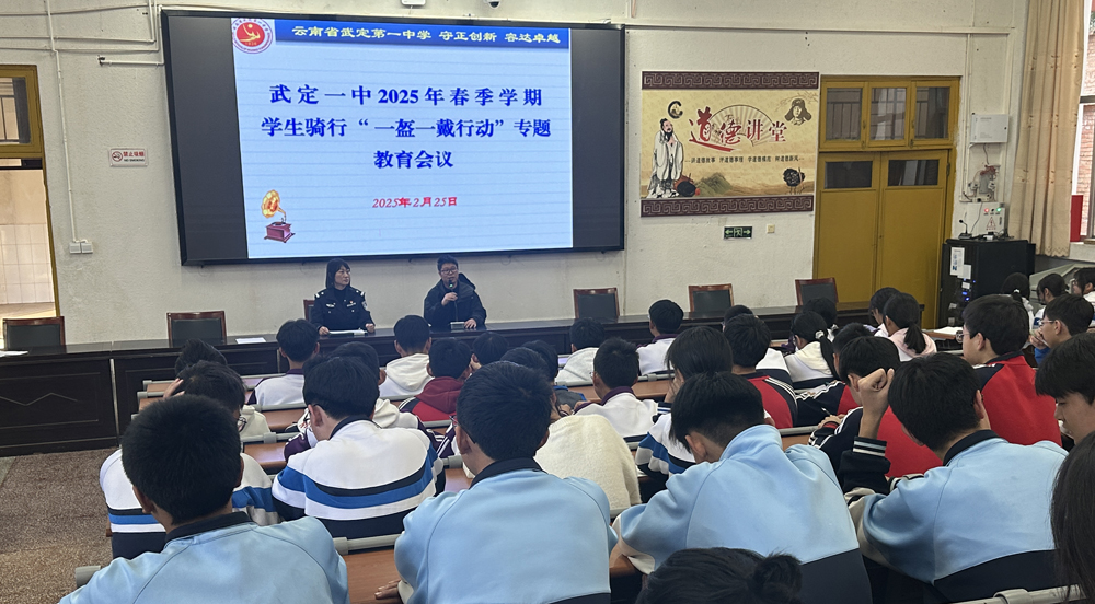 为贯彻落实好《楚雄州师生骑(乘)摩托车、电动车“一盔一戴”整治行动方案》,强化学生交通安全意识,筑牢师生安全出行的“防护网”,严防各类涉校涉生交通事故发生。武定县公安局和武定县教育体育局联合制定了《武定县师生骑(乘)摩托车、电动车“一盔一戴”整治行动方案》,并于2025年春季学期开学之际,联合到学校开展学生骑行“一盔一戴”交通安全专题教育活动。