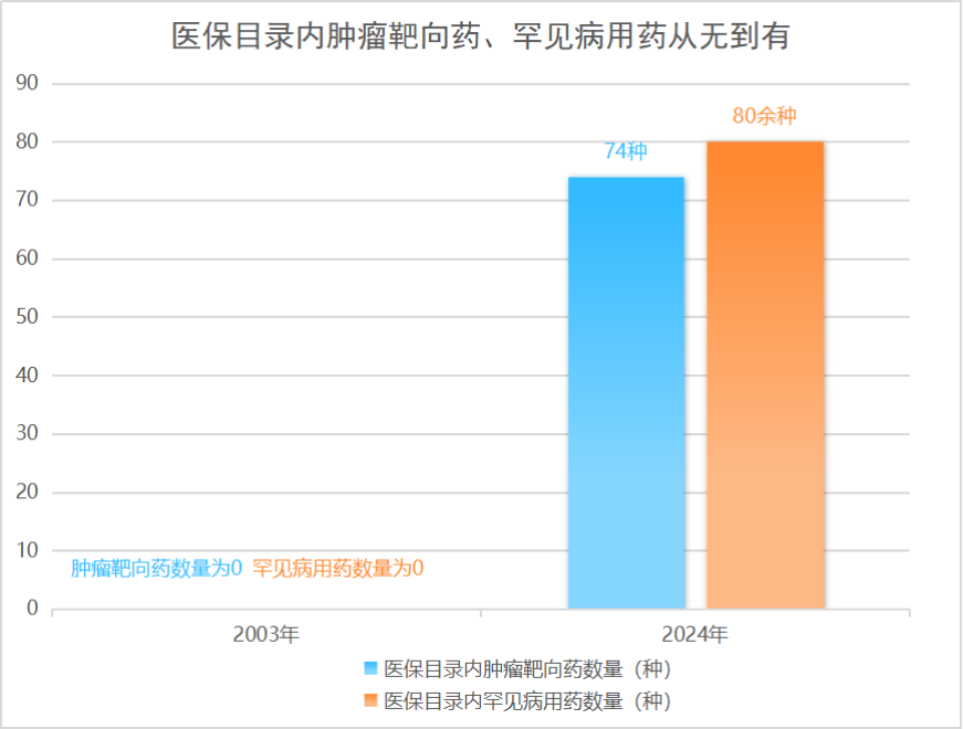 一是对群众的保障范围显著拓展。2003年“新农合”建立初期,能报销的药品只有300余种,治疗癌症、罕见病等的用药几乎不能报销,罹患大病的患者治疗手段非常有限。目前,我国医保药品目录内包含药品已达3088种,覆盖了公立医疗机构用药金额90%以上的品种,其中包含74种肿瘤靶向药、80余种罕见病用药。特别是许多新药好药在国内上市后不久就可以按规定纳入医保目录。以治疗白血病的药品“伊马替尼”为例,该药品刚在国内上市时患者服药的年自付费用近30万元,许多患者和家庭不得不“望药兴叹”,在沉重的经济负担和脆弱的生命之间艰难取舍;2018年国家医保局组建以来,该药品集采并经医保报销后,患者每年服药的自付费用降低至6000元左右,不断完善的医保制度让无数患者和家庭重燃生命希望。