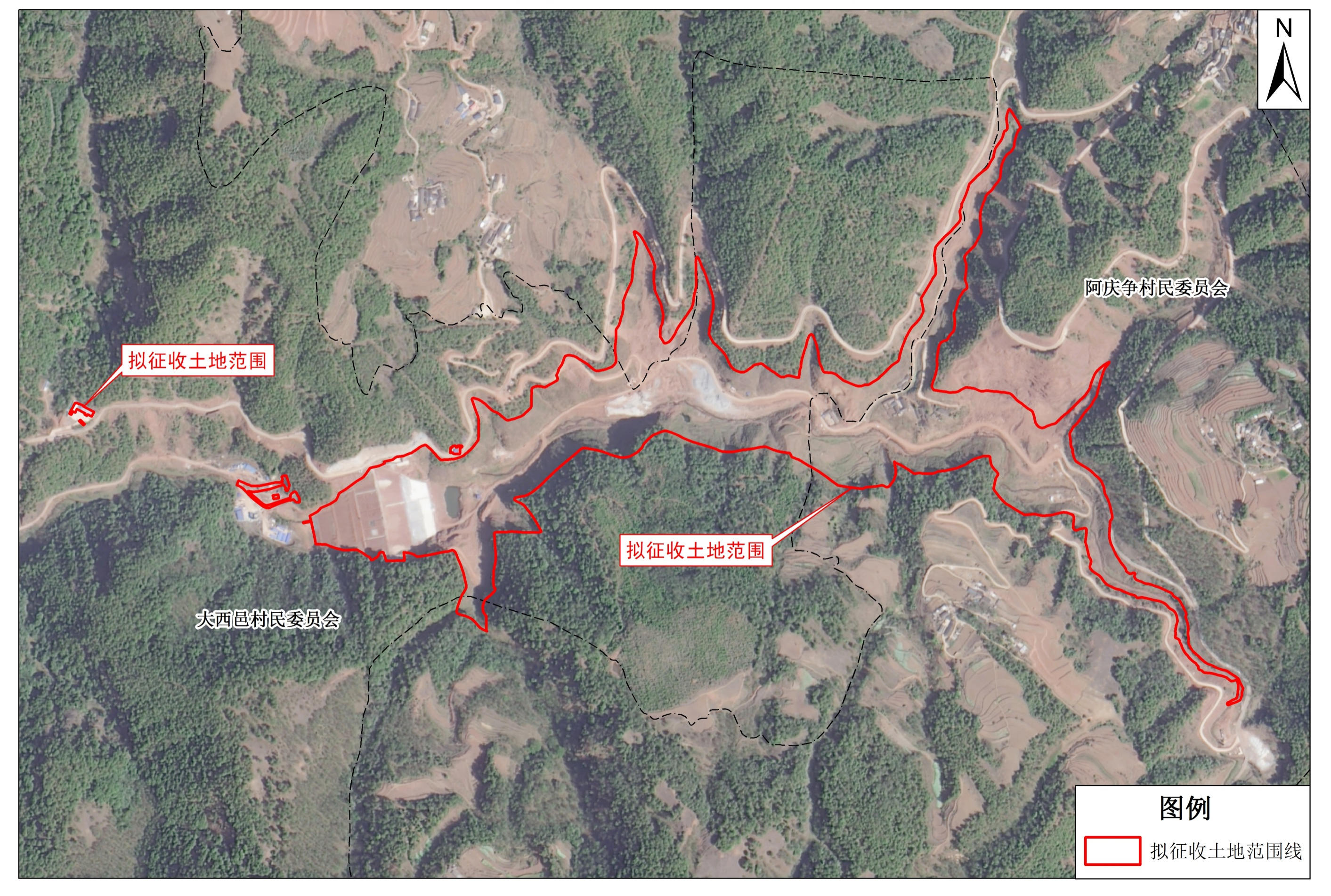 征收范围:征收面积为30.3727公顷,共涉及1个乡2个村委会10个村民小组,具体为发窝乡阿庆争村委会阿庆争第一村民小组、阿庆争第五村民小组,阿庆争村委会大石房第一村民小组、大石房第二村民小组、大石房第三村民小组、大石房第四村民小组,大西邑村委会大西邑第一村民小组、大西邑第二村民小组、大西邑第三村民小组、大西邑第四村民小组,详见拟征地示意图。