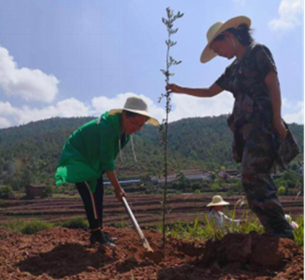 通过与农户一起种植花椒,帮助村民熟悉花椒种植技术,提高花椒成活率,最终达到帮助农民群众通过种植花椒稳定增收的目的。